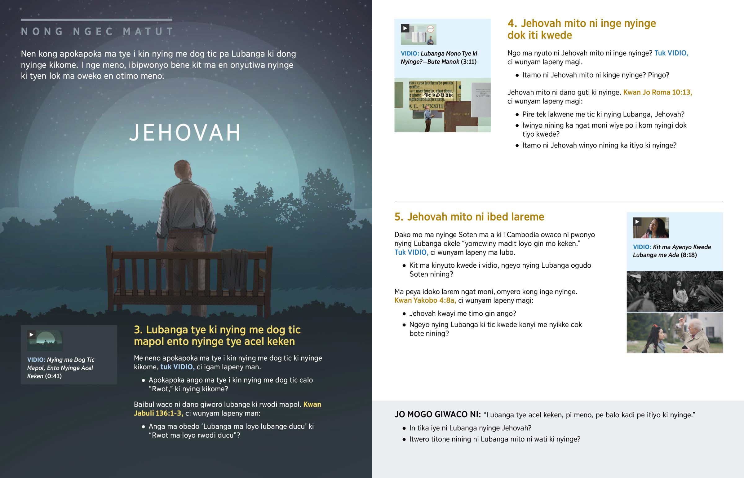 Ngo ma nyuto ni Jehovah mito ni inge nyinge? Tuk VIDIO, ci wunyam lapeny magi.