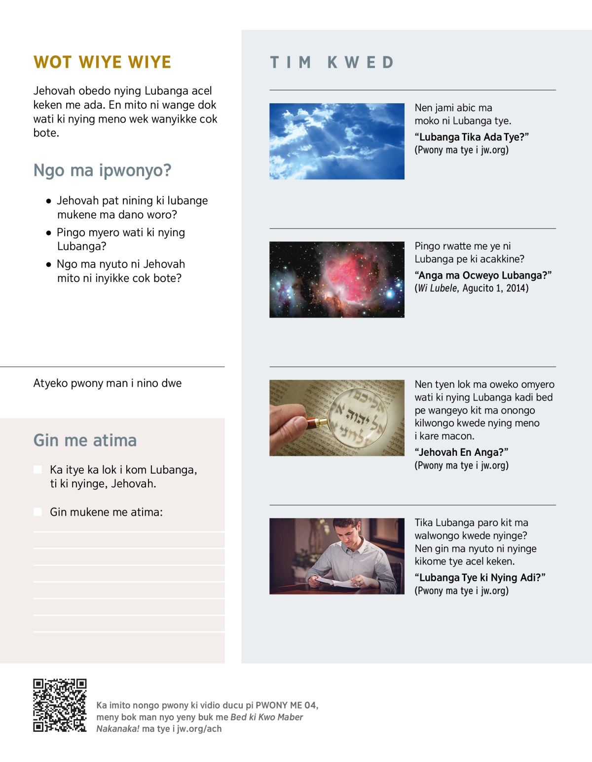 Itwero titone nining ni Lubanga mito ni wati ki nyinge?