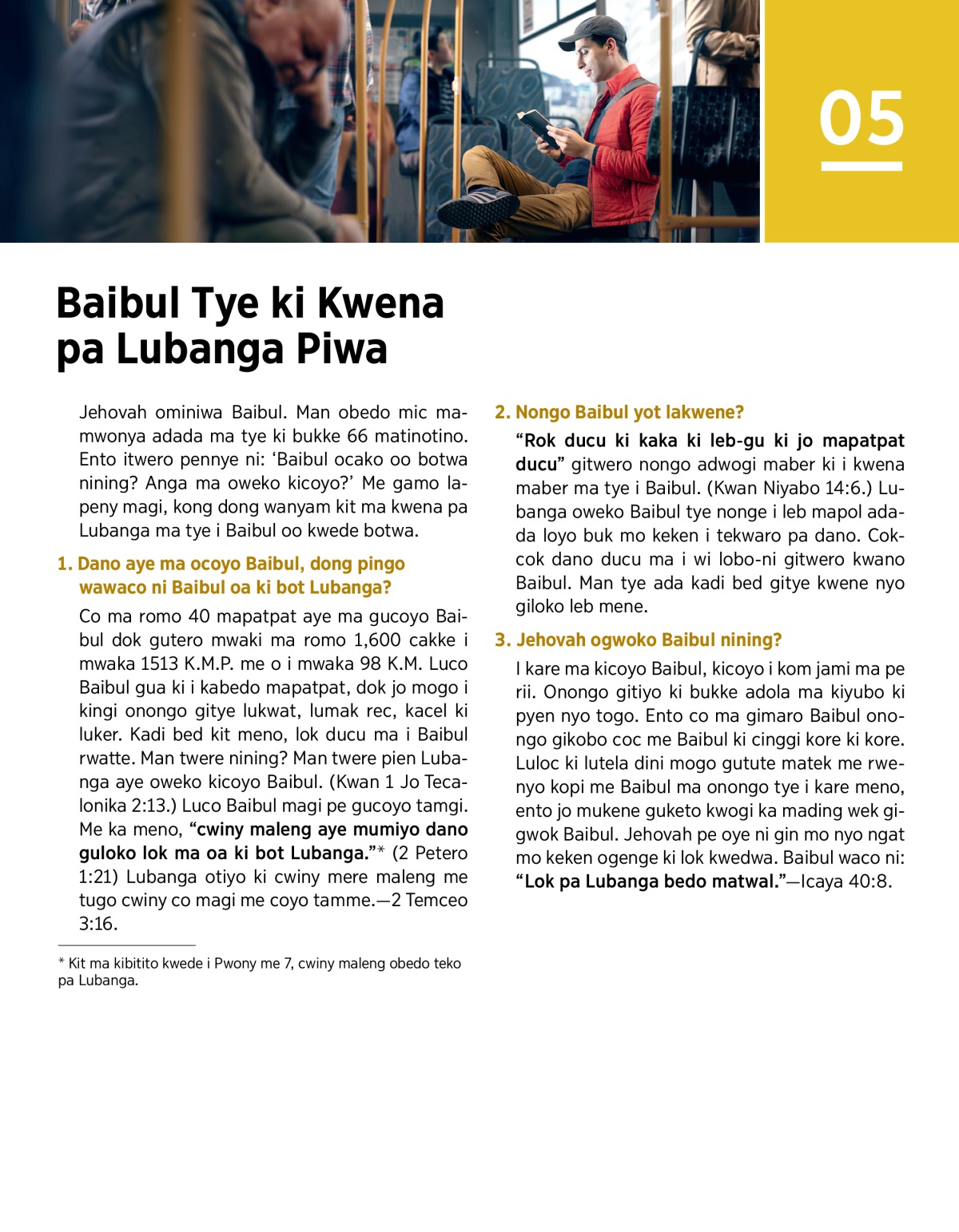 1. Dano aye ma ocoyo Baibul, dong pingo wawaco ni Baibul oa ki bot Lubanga?