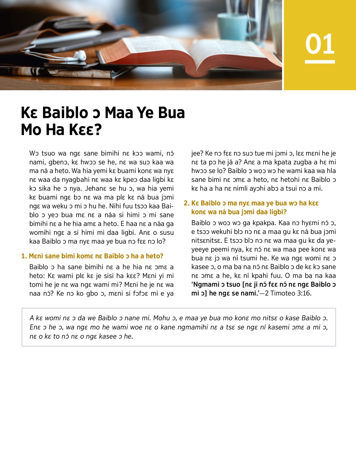 2. Kɛ Baiblo ɔ ma nyɛ maa ye bua wɔ ha kɛɛ konɛ wa ná bua jɔmi daa ligbi?