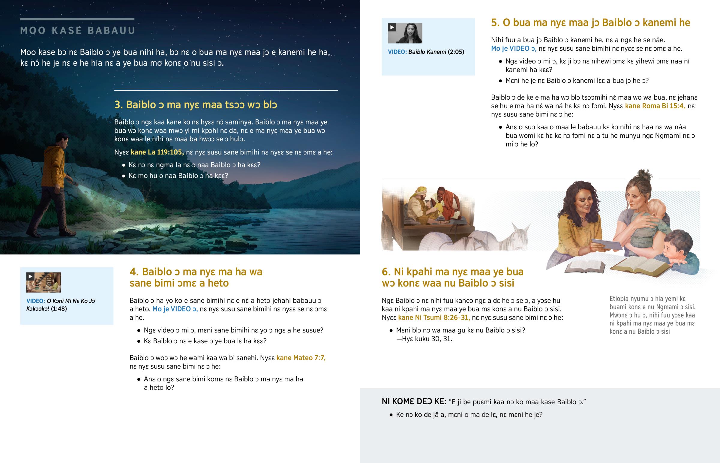A kɛ womi nɛ ɔ da we Baiblo ɔ nane mi. Mohu ɔ, e maa ye bua mo konɛ mo nitsɛ o kase Baiblo ɔ. Enɛ ɔ he ɔ, wa ngɛ mo he wami woe nɛ o kane ngmamihi nɛ a tsɛ se ngɛ ní kasemi ɔmɛ a mi ɔ, nɛ o kɛ to nɔ́ nɛ o ngɛ kasee ɔ he.