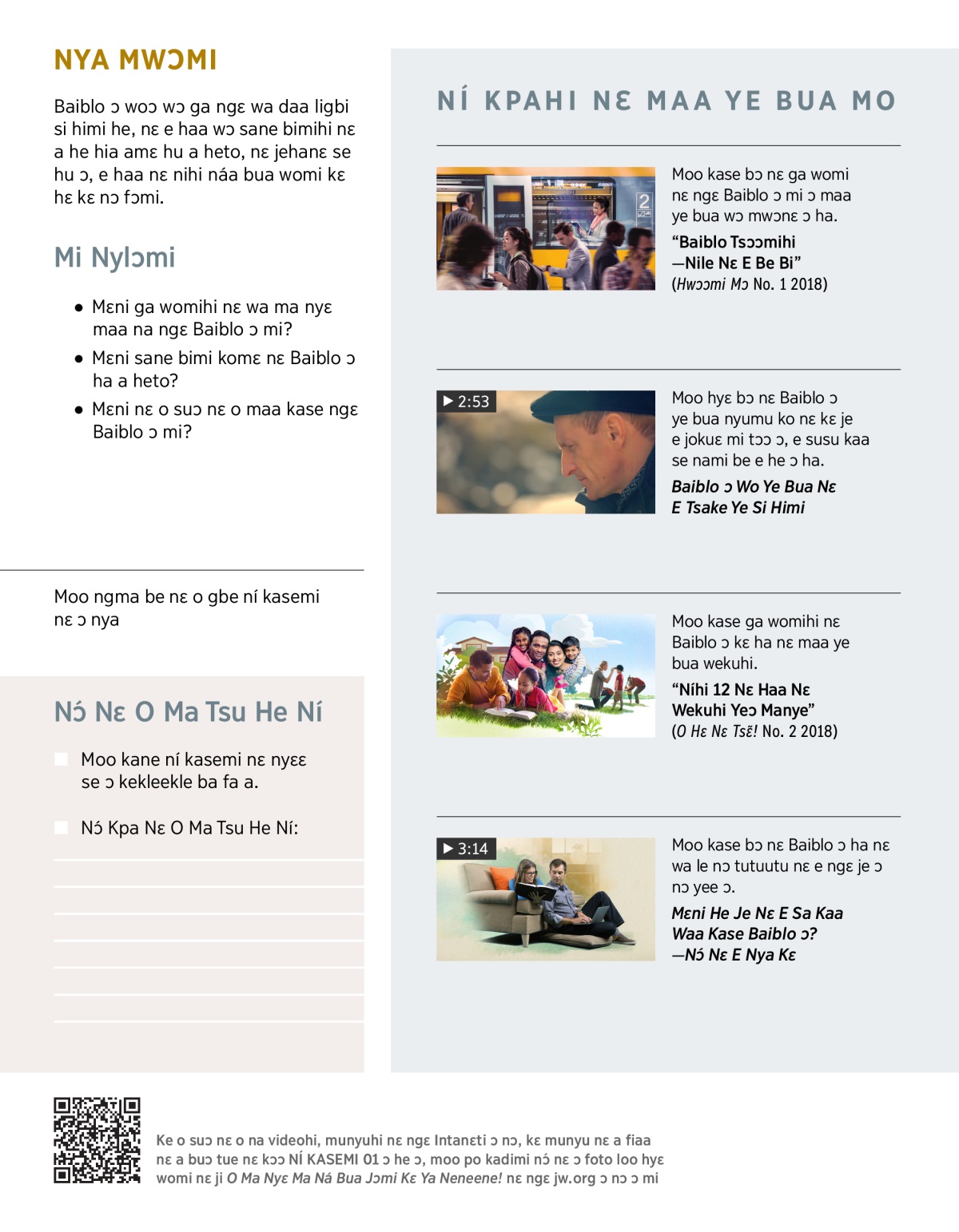 Mɛni He Je Nɛ E Sa Kaa Waa Kase Baiblo ɔ?—Nɔ́ Nɛ E Nya Kɛ (3:14)