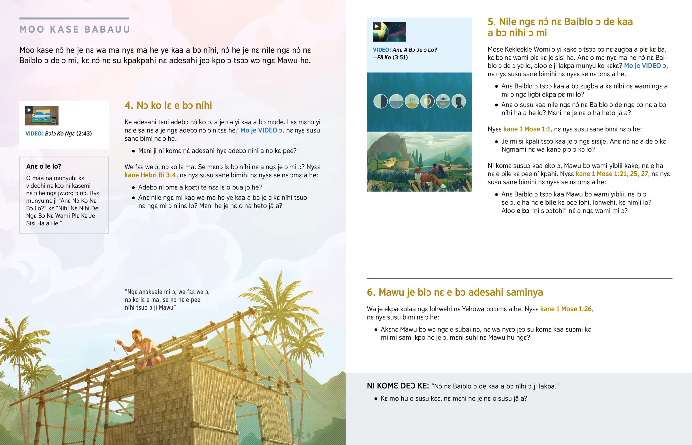 O maa na munyuhi kɛ videohi nɛ kɔɔ ní kasemi nɛ ɔ he ngɛ jw.org ɔ nɔ. Hyɛ munyu nɛ ji “Anɛ Nɔ Ko Nɛ Bɔ Lo?” kɛ “Níhi Nɛ Nihi De Ngɛ Bɔ Nɛ Wami Plɛ Kɛ Je Sisi Ha a He.”