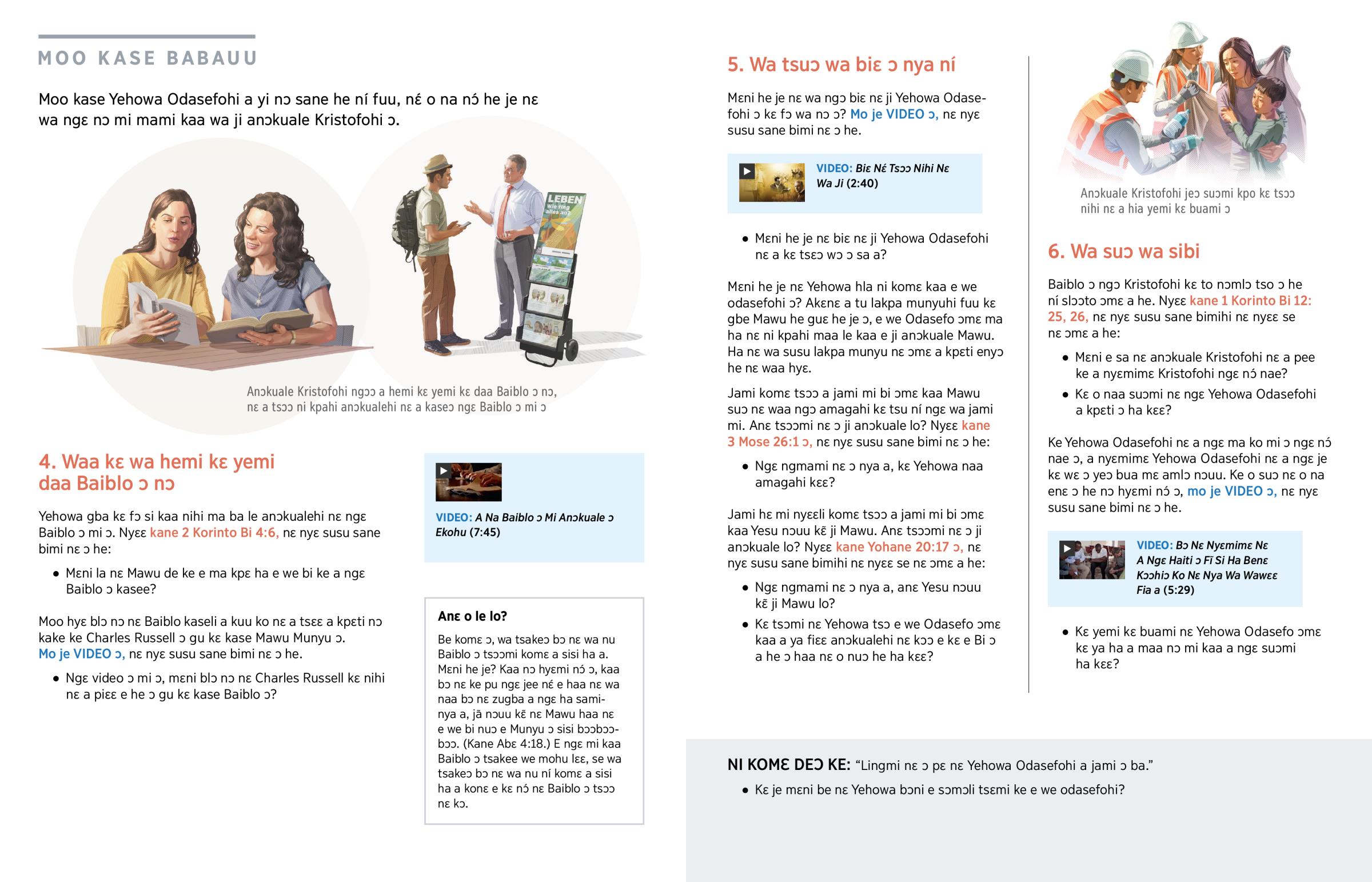 Yehowa Odasefohi ji anɔkuale Kristofohi. Wa ji weku kake ngɛ je kɛ wɛ, waa kɛ wa hemi kɛ yemi daa Baiblo ɔ nɔ, nɛ wa tsɔɔ nihi Yehowa he anɔkualehi nɛ ngɛ Baiblo ɔ mi ɔ.