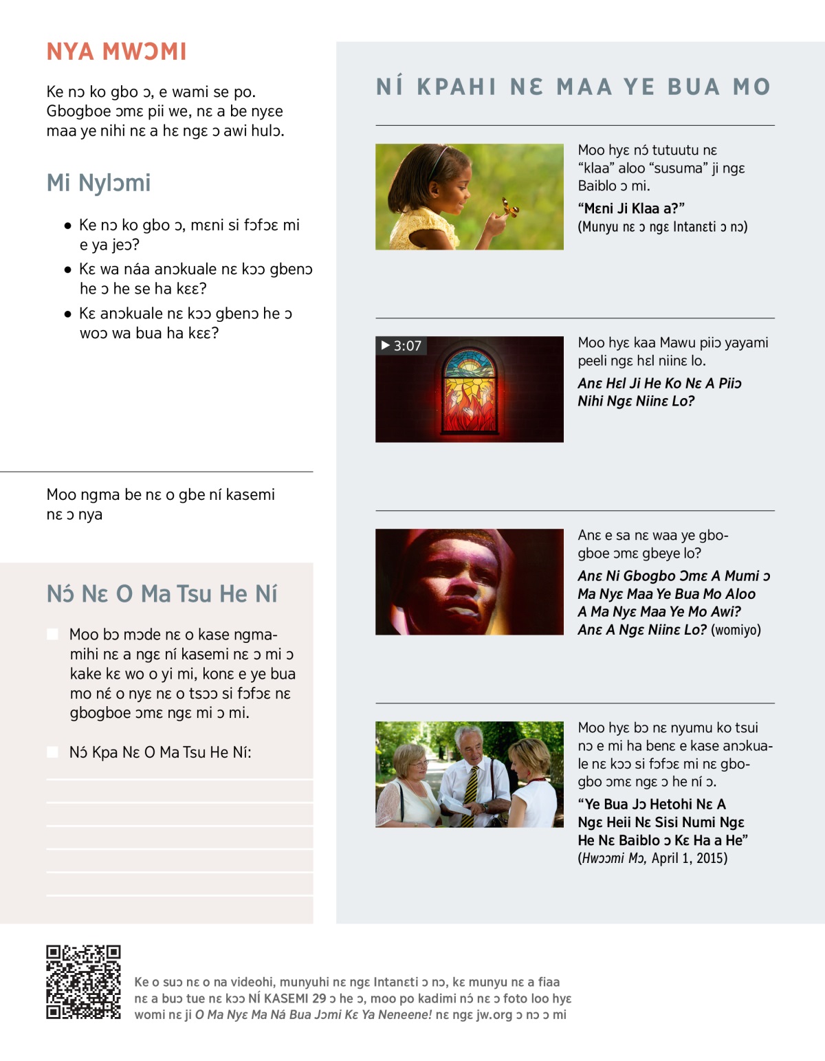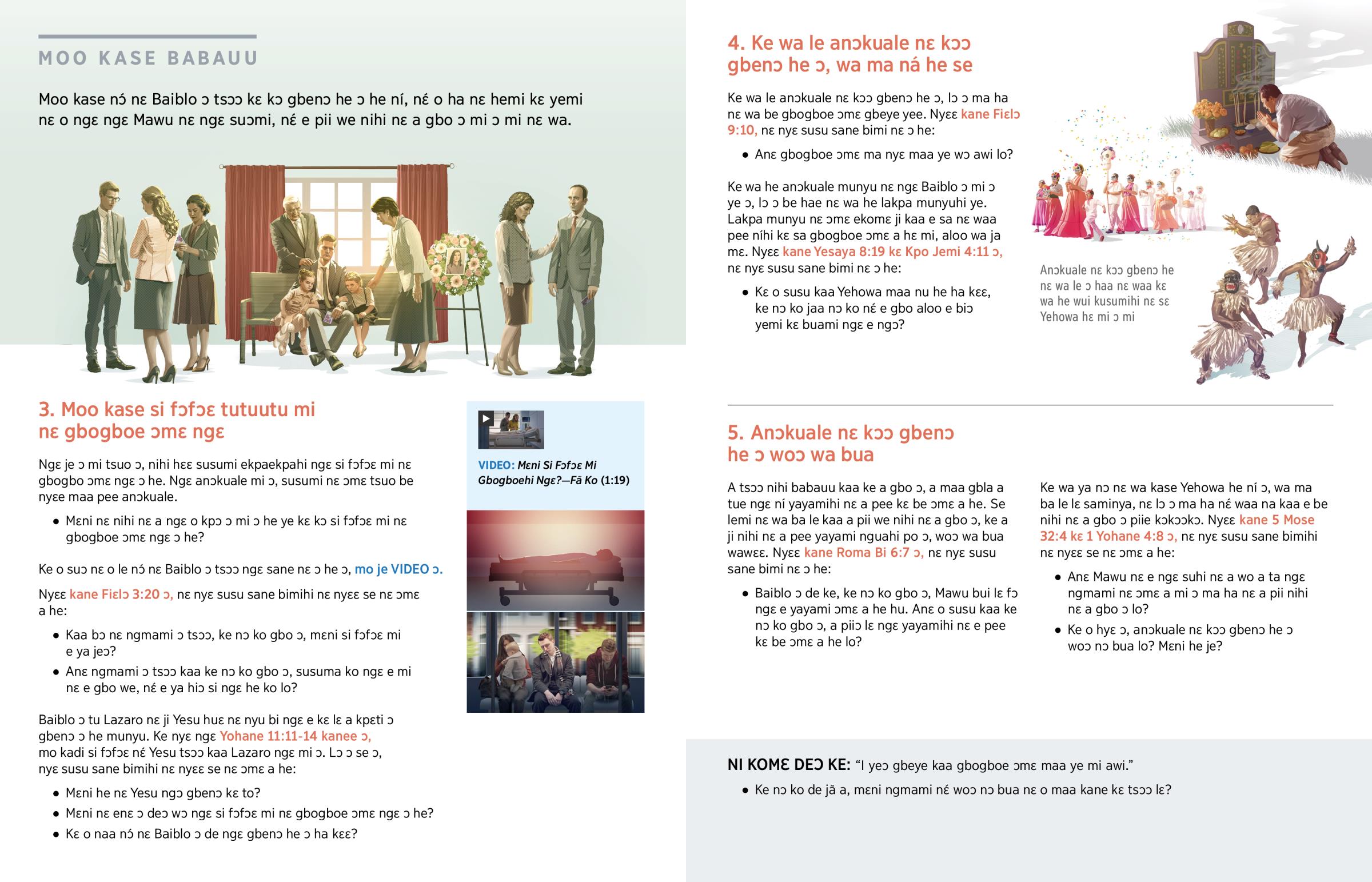 Moo kase nɔ́ nɛ Baiblo ɔ tsɔɔ kɛ kɔ gbenɔ he ɔ he ní, nɛ́ o ha nɛ hemi kɛ yemi nɛ o ngɛ ngɛ Mawu nɛ ngɛ suɔmi, nɛ́ e pii we nihi nɛ a gbo ɔ mi ɔ mi nɛ wa.