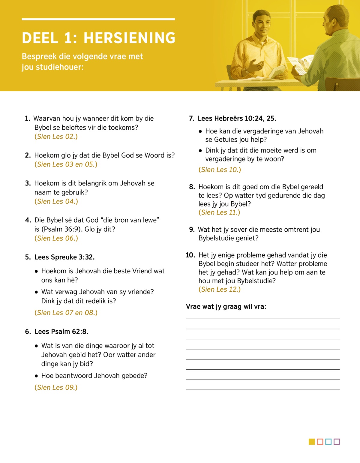 Bespreek die volgende vrae met jou studiehouer: