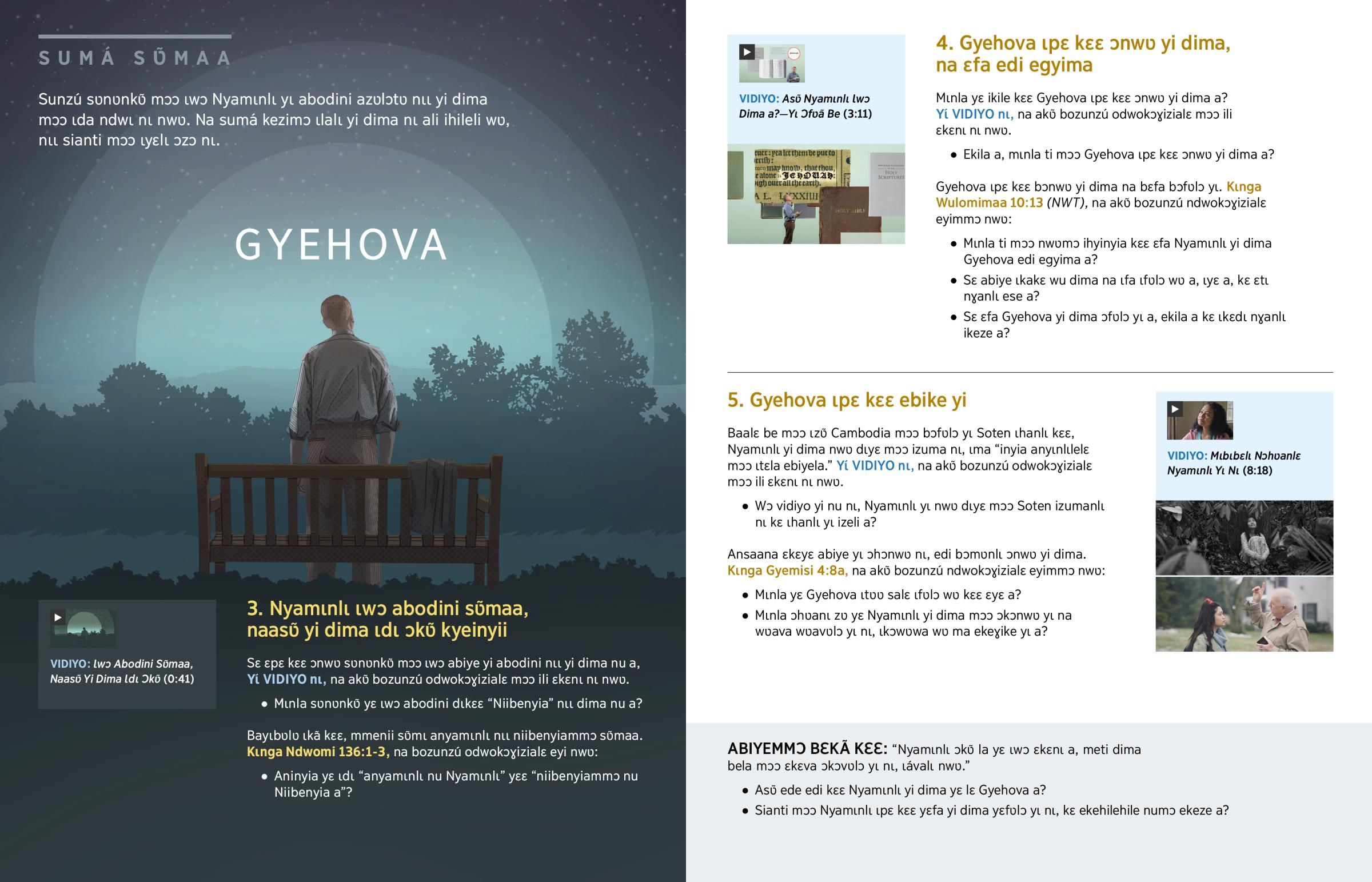 Mɩnla yɛ ikile kɛɛ Gyehova ɩpɛ kɛɛ ɔnwʋ yi dima a? Yɩ́ VIDIYO nɩ, na akʋ̃ bozunzú odwokɔɣizialɛ mɔɔ ili ɛkɛnɩ nɩ nwʋ.