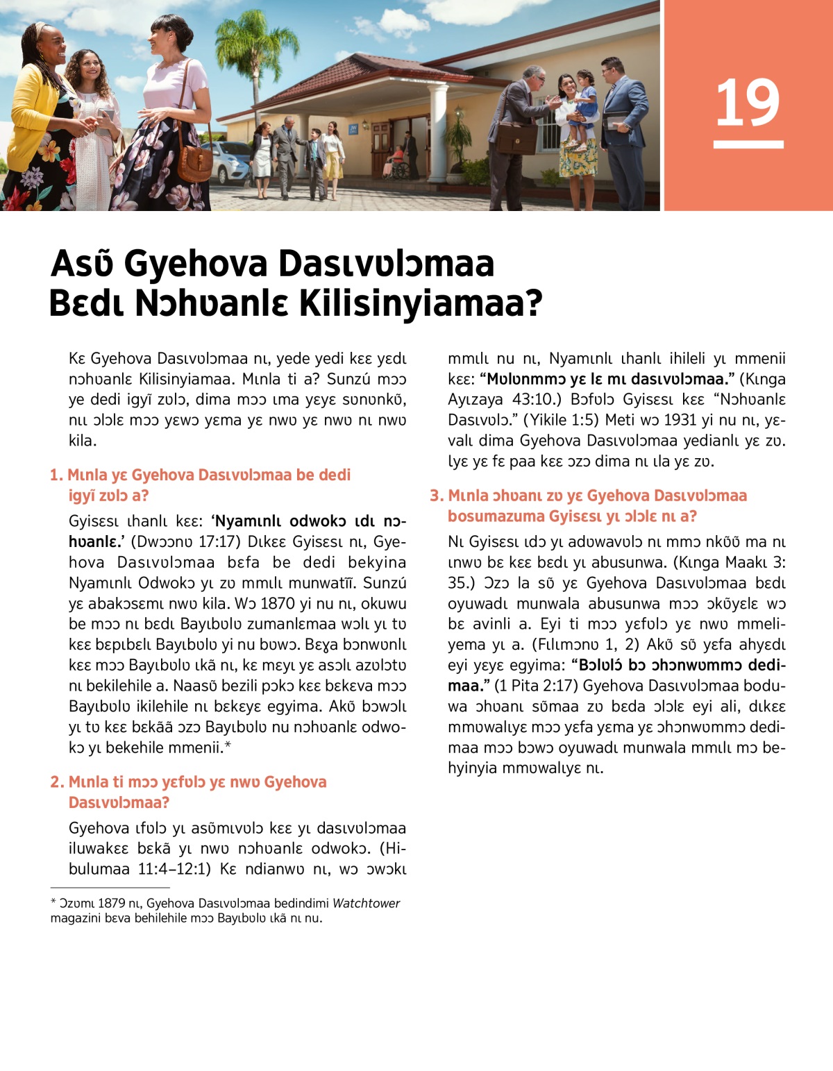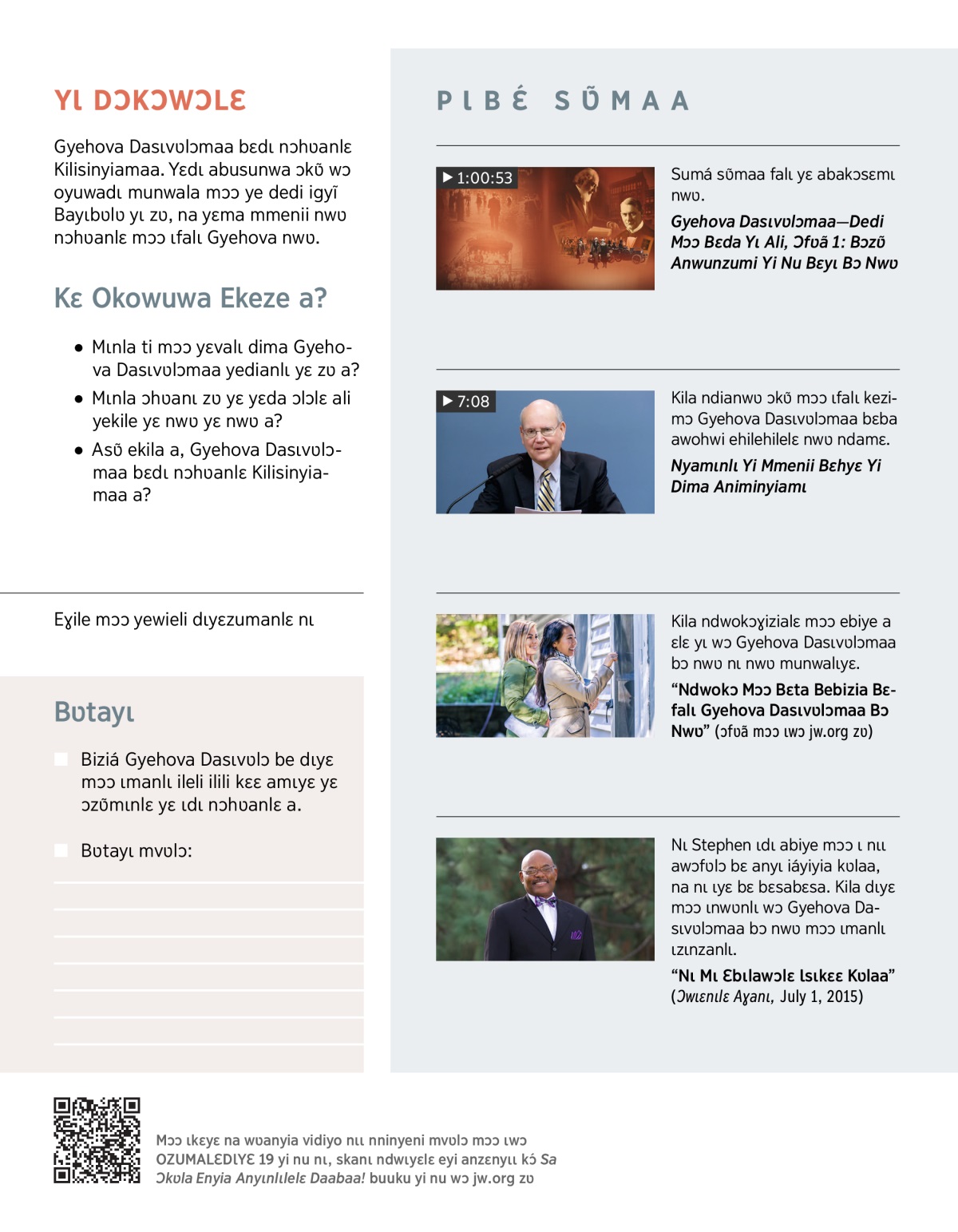 “Ndwokɔ Mɔɔ Bɛta Bebizia Bɛfalɩ Gyehova Dasɩvʋlɔmaa Bɔ Nwʋ” (ɔfʋã mɔɔ ɩwɔ jw.org zʋ)