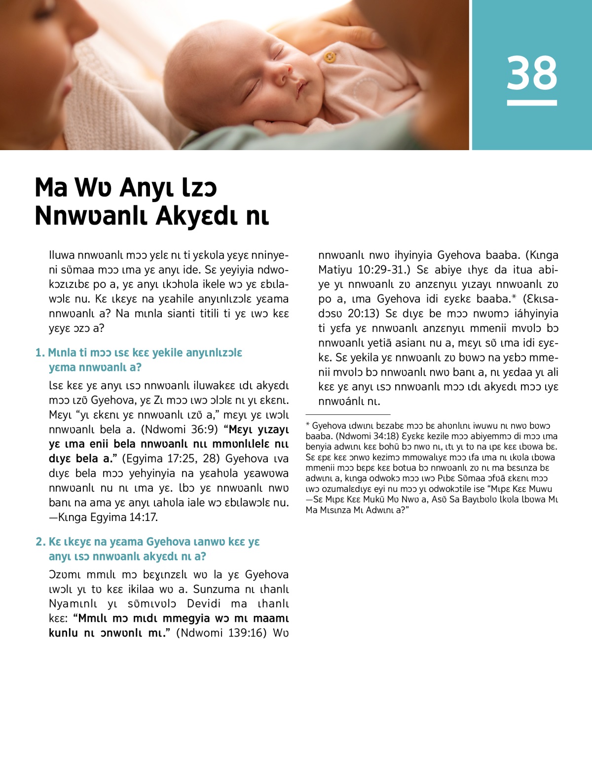 Nnwʋanlɩ ɩdɩ akyɛdɩ mɔɔ Gyehova ɩva ɩma yɛ, Bayɩbʋlʋ ikilehile yɛ kɛɛ yɛlɔ́ nnwʋanlɩ, yewú yi kɛɛ ɩtʋ bʋlɔ na yɛwɔ́ nwʋmɔ banɩ. Eyi ɩfalɩ yɛzayɛ nɩɩ mmenii mvʋlɔ bɔ nnwʋanlɩ nwʋ.