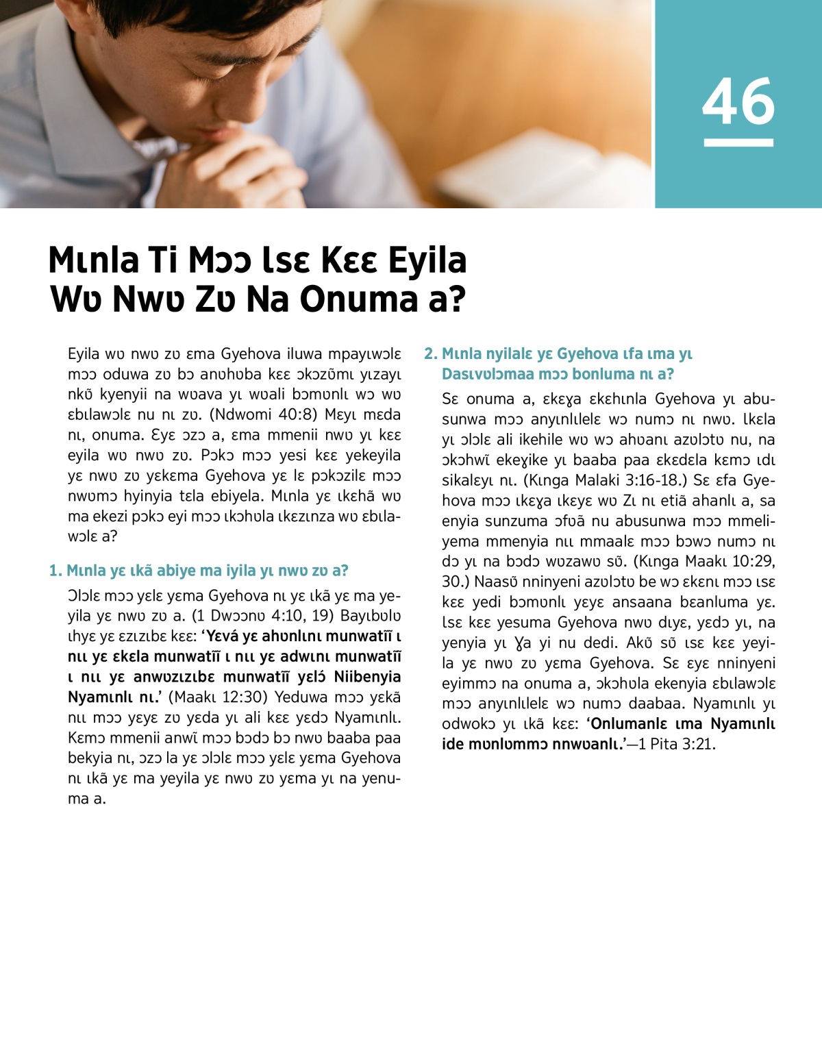“Mɩnla Ti Mɔɔ Ɩsɛ Kɛɛ Eyila Wʋ Nwʋ Zʋ Ɛma Gyehova a?” (Ɔwɩɛnɩlɛ Aɣanɩ, January 15, 2010)