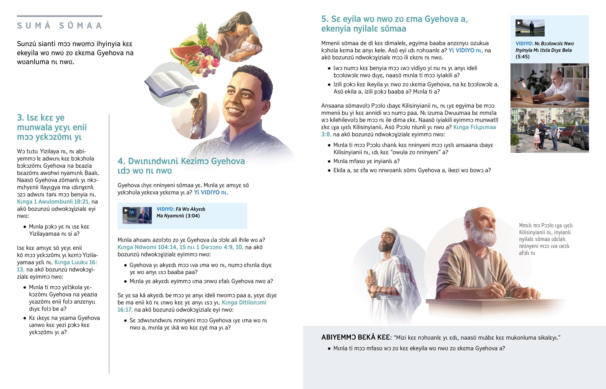 Wɔ ndwomi mɔɔ bɛyɛ yɩ vidiyo yi nu nɩ, kila kezimɔ mmenii mɔɔ beyila bɔ nwʋ zʋ bɛma Gyehova nɩ bɛ anyɩ ide.