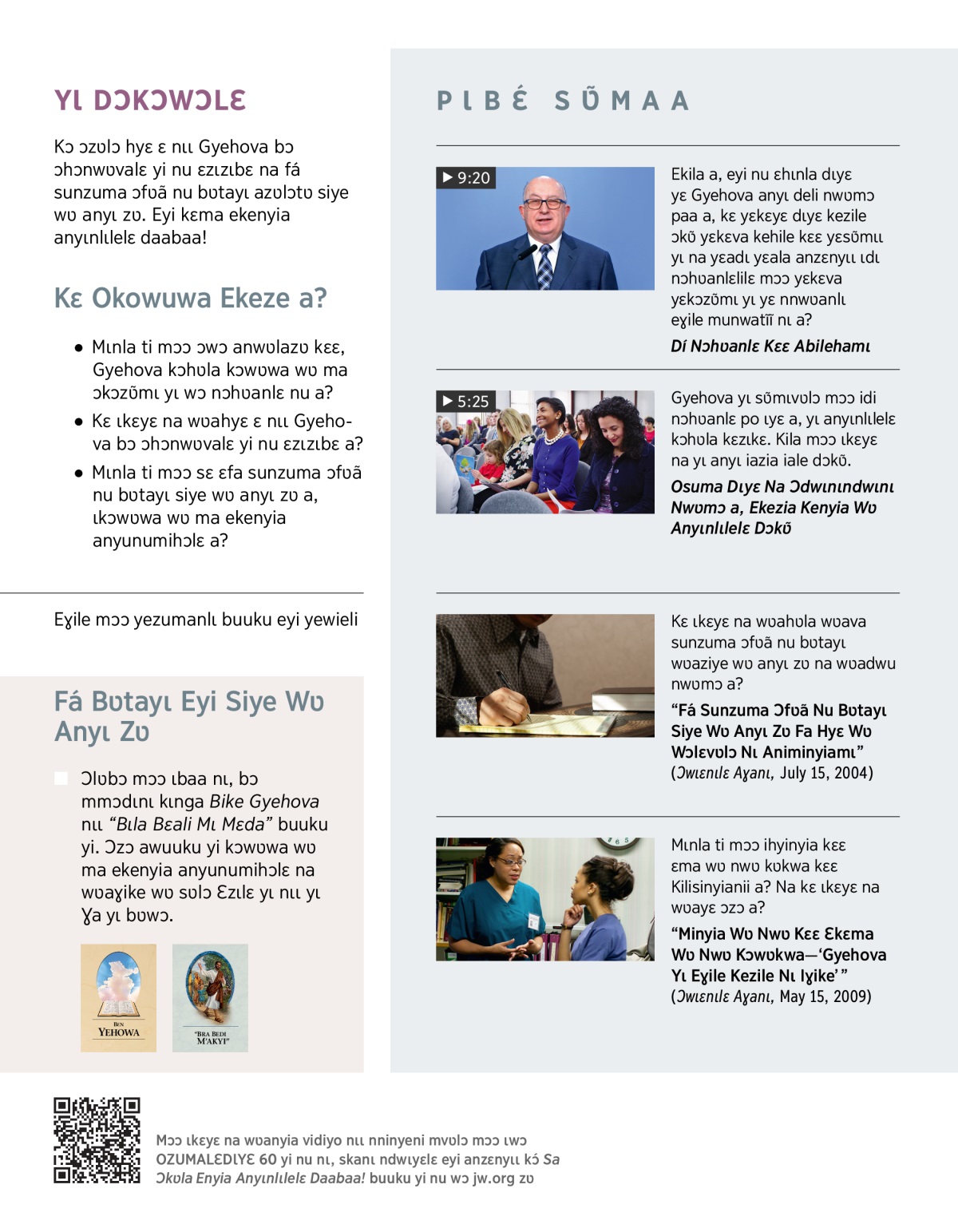 Sɛ ɛfa bʋtayɩ azʋlɔtʋ siye wʋ anyɩ zʋ wɔ Gyehova ɔzʋ̃mɩnlɛ nu a, ɩkɛma ekenyia anyunumihɔlɛ. Yɩ́ VIDIYO nɩ, na akʋ̃ bozunzú odwokɔɣizialɛ mɔɔ ili ɛkɛnɩ nɩ nwʋ.