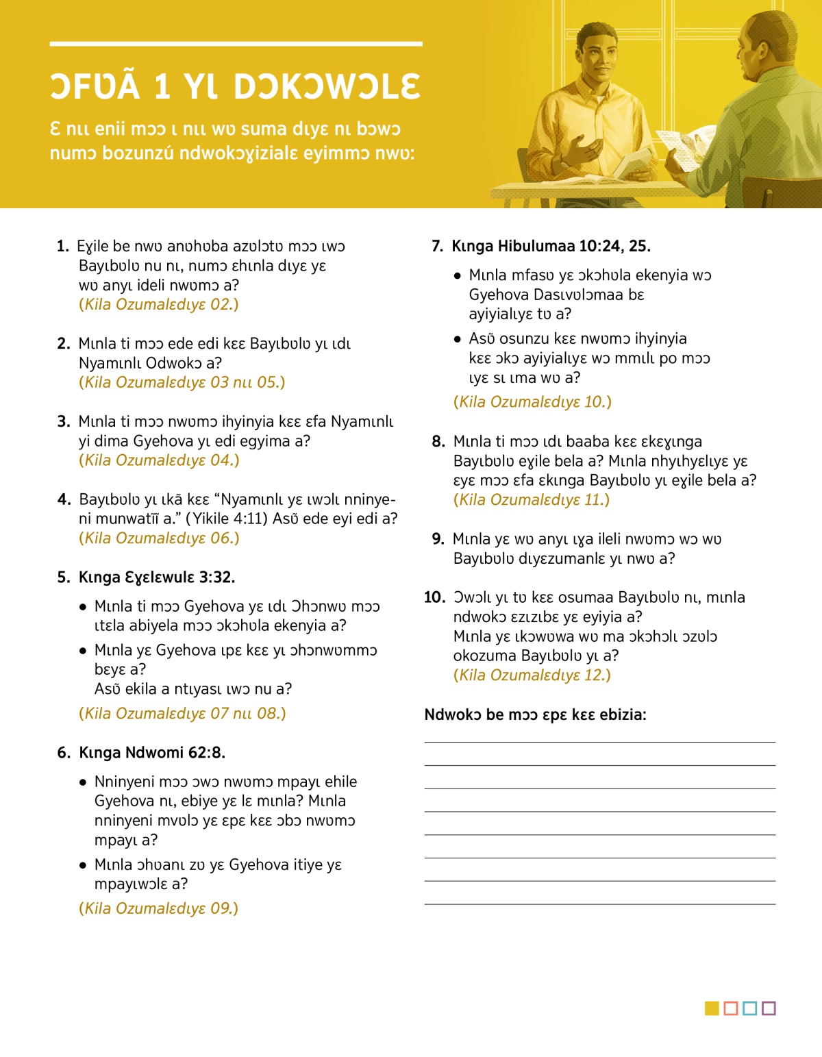 Ɔwɔlɩ yɩ tʋ kɛɛ osumaa Bayɩbʋlʋ nɩ, mɩnla ndwokɔ ɛzɩzɩbɛ yɛ eyiyia a? Mɩnla yɛ ɩkɔwʋwa wʋ ma ɔkɔhɔlɩ ɔzʋlɔ okozuma Bayɩbʋlʋ yɩ a?