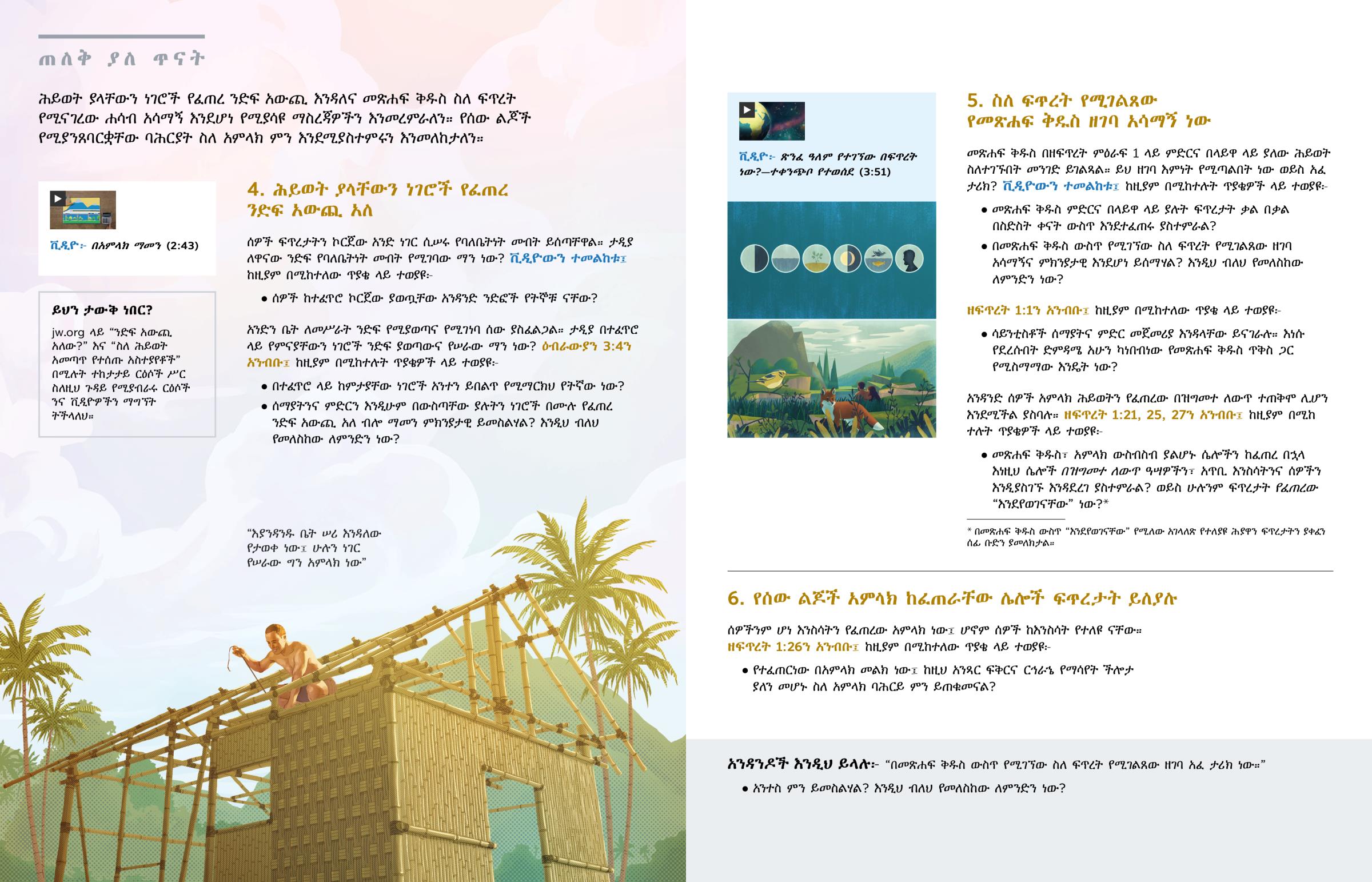 መጽሐፍ ቅዱስ በዘፍጥረት ምዕራፍ 1 ላይ ምድርና በላይዋ ላይ ያለው ሕይወት ስለተገኙበት መንገድ ይገልጻል። ይህ ዘገባ እምነት የሚጣልበት ነው ወይስ አፈ ታሪክ? ቪዲዮውን ተመልከቱ፤ ከዚያም በሚከተሉት ጥያቄዎች ላይ ተወያዩ፦
