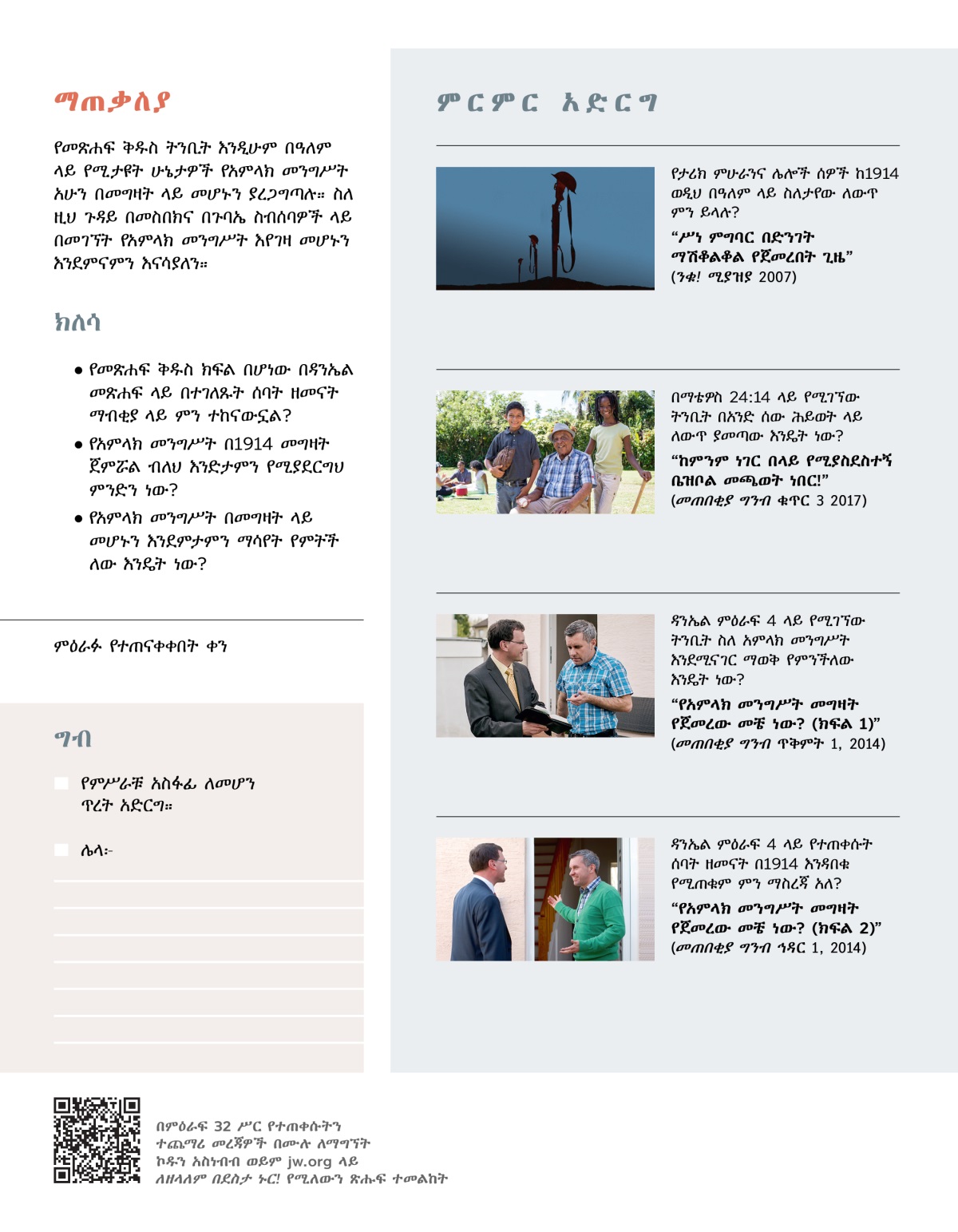 “የአምላክ መንግሥት መግዛት የጀመረው መቼ ነው? (ክፍል 2)” (መጠበቂያ ግንብ ኅዳር 1, 2014)