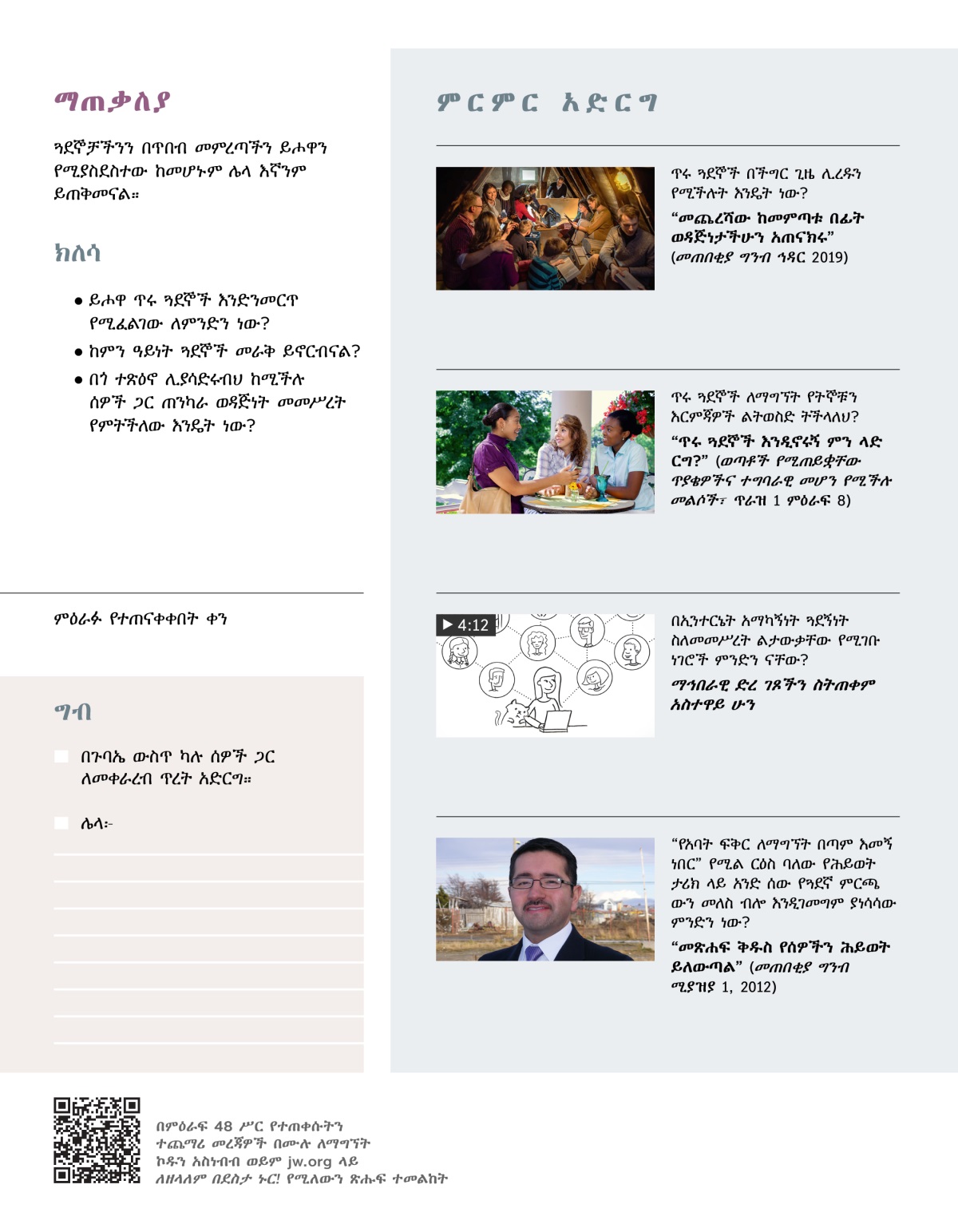 በቀጣዩ ቪዲዮ ላይ አንድ ወጣት ወንድም ባላሰበው ቦታ ጓደኛ ያገኘው እንዴት ነው? ቪዲዮውን ተመልከቱ፤ ከዚያም በሚከተሉት ጥያቄዎች ላይ ተወያዩ፦