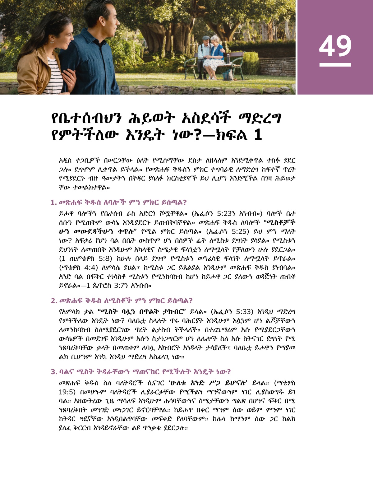 ትዳርን ለማጠናከር የሚረዱ የመጽሐፍ ቅዱስ ምክሮችን እንመለከታለን።