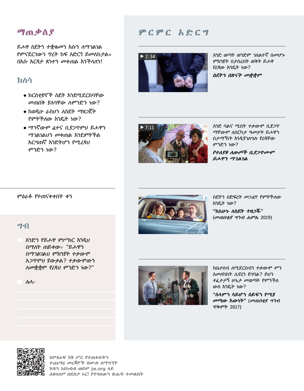 በዚህ ቪዲዮ ላይ ከተጠቀሱት ወንድሞችና እህቶች ምሳሌ ምን ማበረታቻ አግኝተሃል?