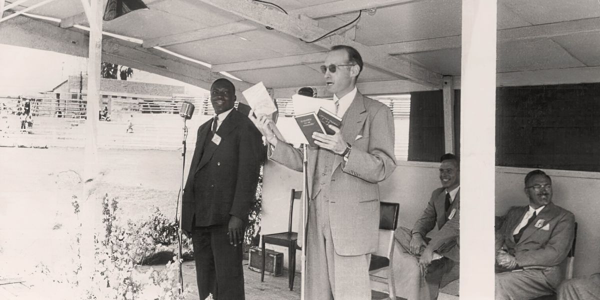 በ1955 ከይሖዋ ምሥክሮች ዋና መሥሪያ ቤት የመጣው ሚልተን ሄንሸል የተለያየ ዘር ያላቸው የይሖዋ ምሥክሮች በተገኙበት ትልቅ ስብሰባ ላይ ንግግር ሲያቀርብ