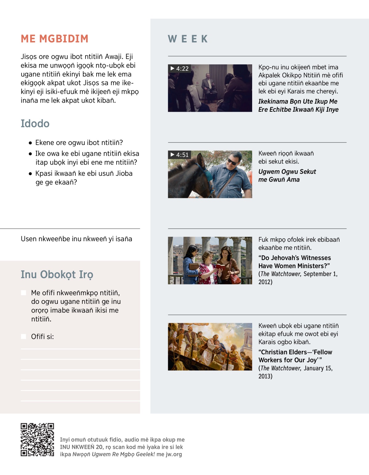 • Ire igbe ibe eji ekesiki ibot enyi ebi ugane ntitiin̄ ike Baibul obe mè eji erọ ni? Keke orọ ofọọkbe ikeya?