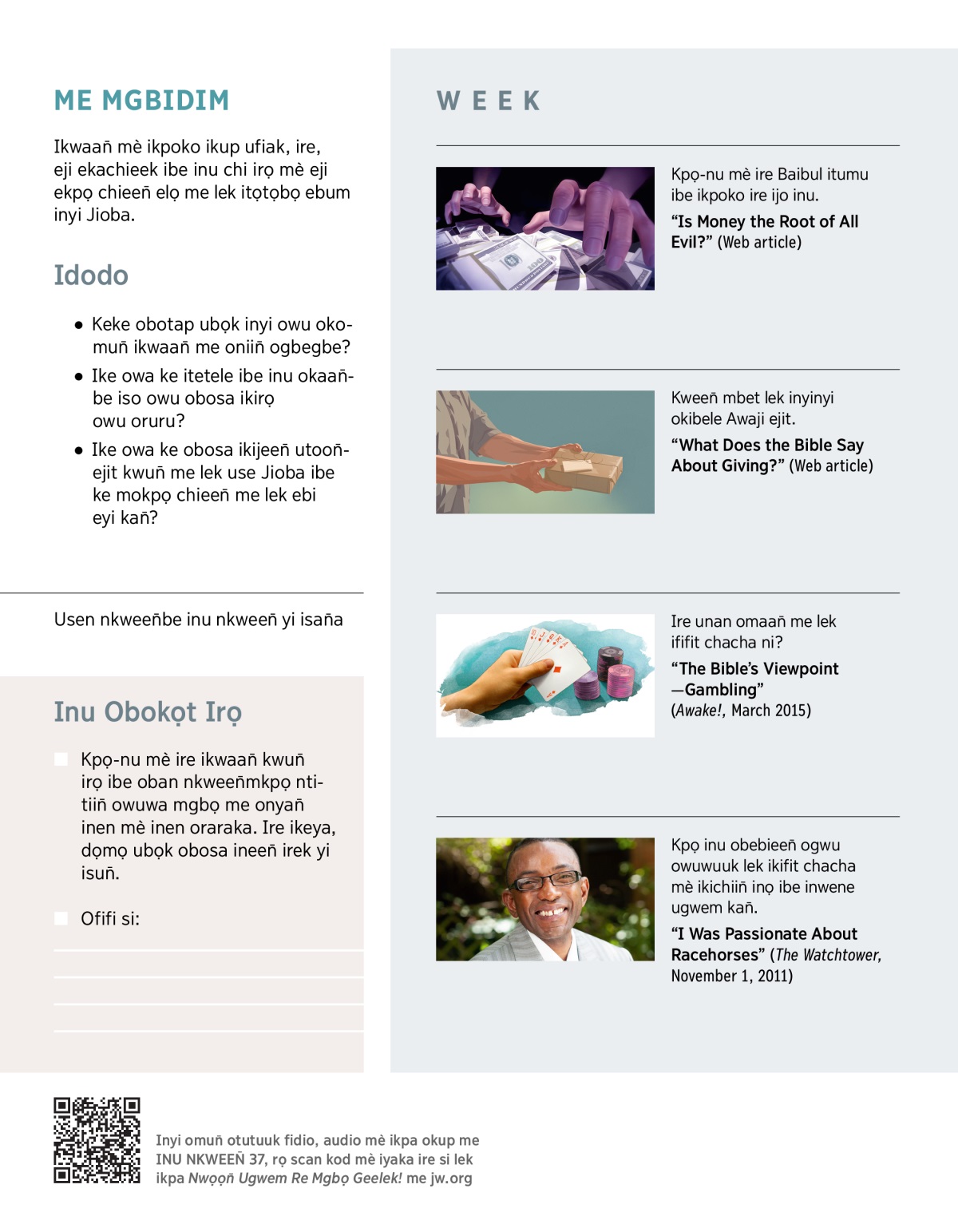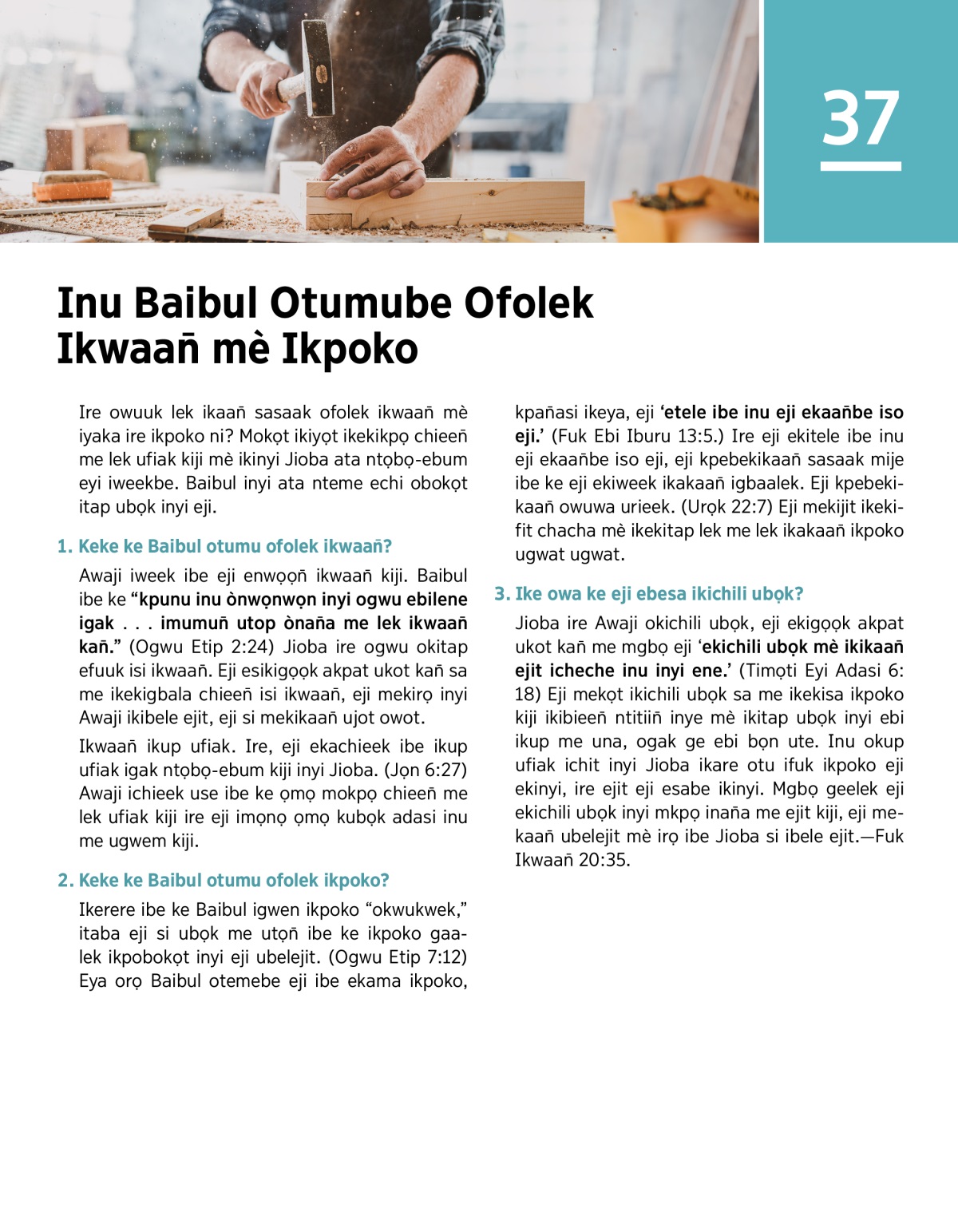 Ire owuuk lek ikaan̄ sasaak ofolek ikwaan̄ mè iyaka ire ikpoko ni? Mokọt ikiyọt ikekikpọ chieen̄ me lek ufiak kiji mè ikinyi Jioba ata ntọbọ-ebum eyi iweekbe. Baibul inyi ata nteme echi obokọt itap ubọk inyi eji.