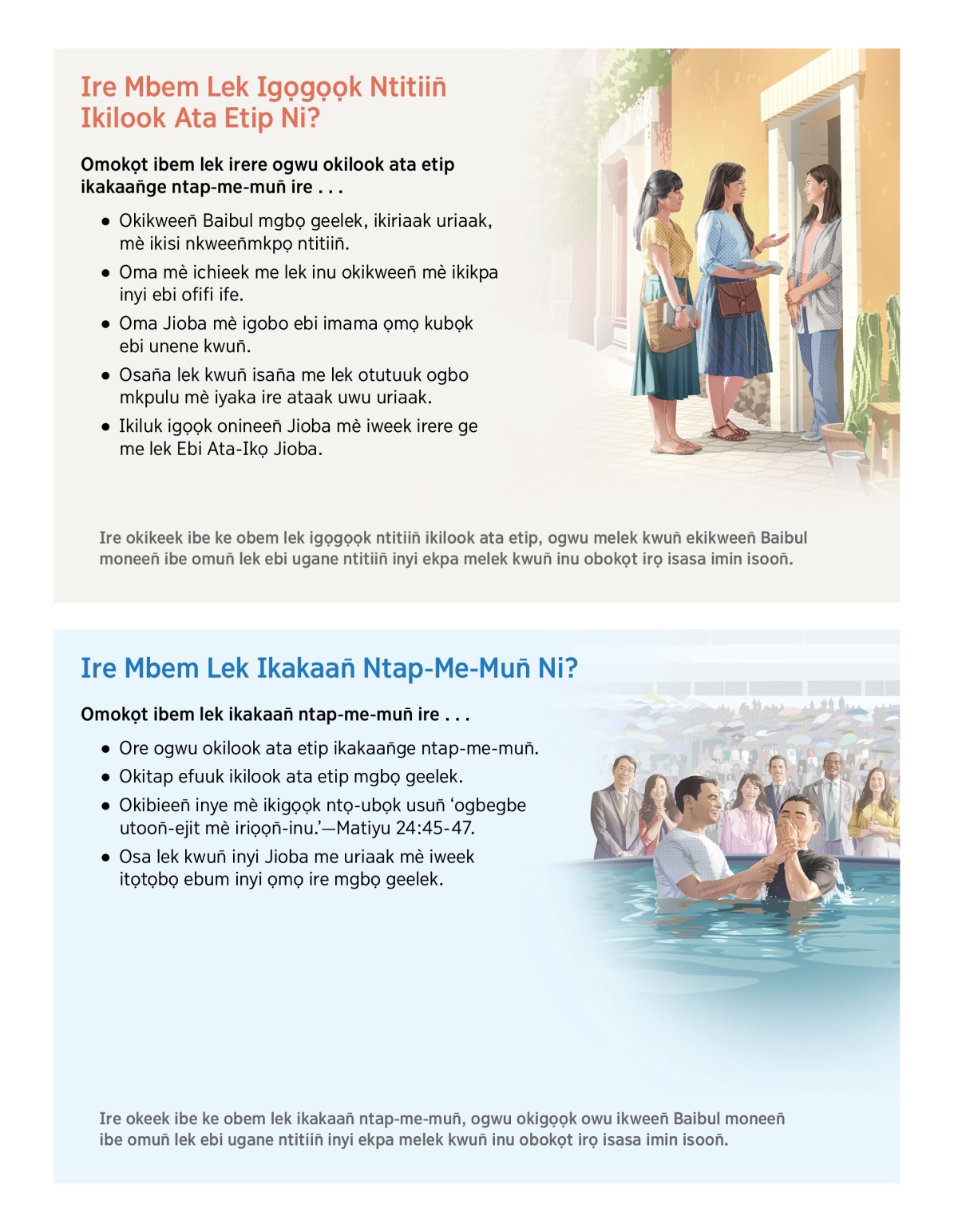 Okibieen̄ inye mè ikigọọk ntọ-ubọk usun̄ ‘ogbegbe utoon̄-ejit mè iriọọn̄-inu.’—Matiyu 24:45-47.