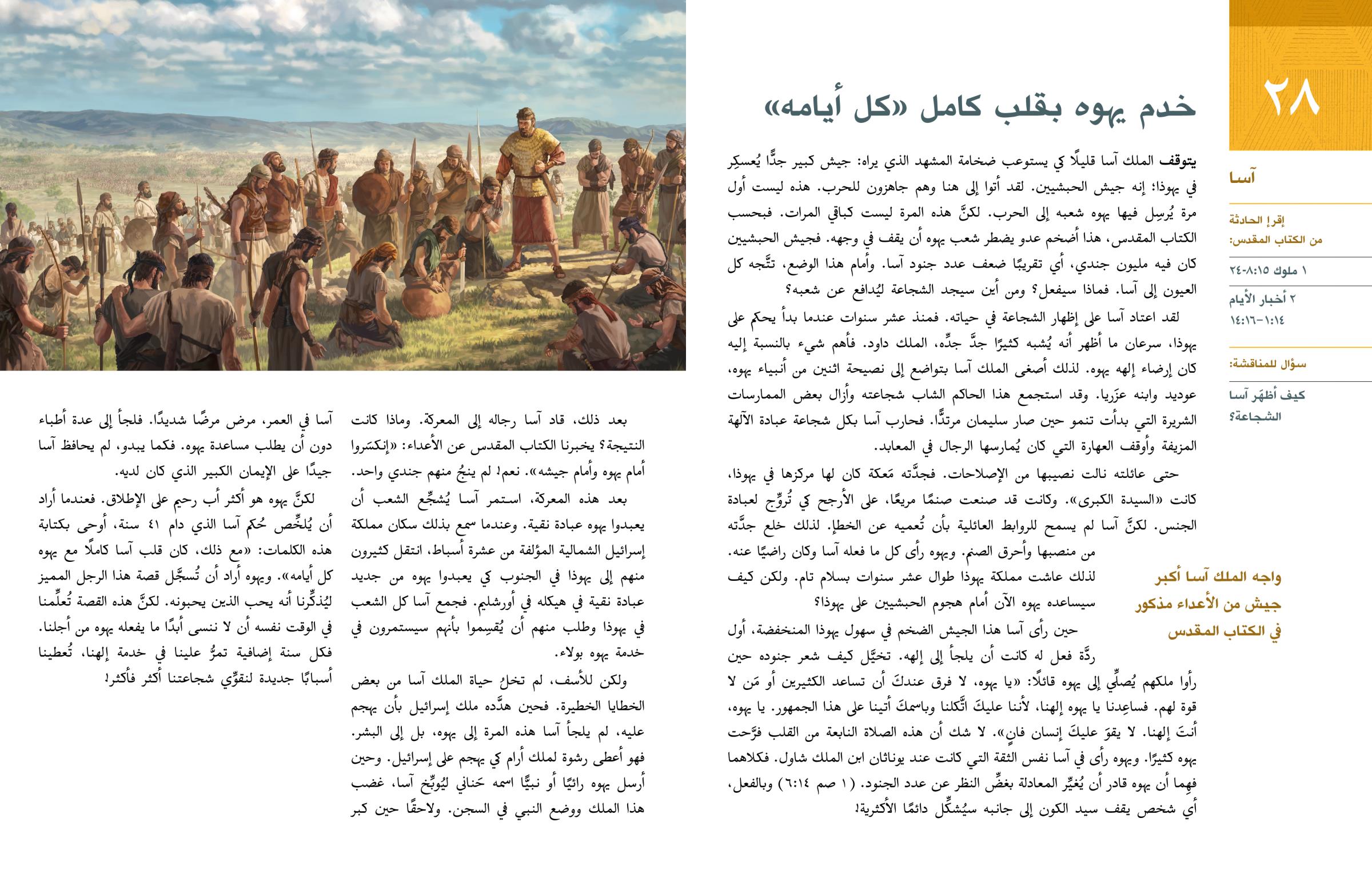 ٣- صحيح أن آسا ارتكب الأخطاء، ولكن أي أمور قام بها أظهرت أن ‹قلبه كان كاملًا مع يهوه›؟ (١ مل ١٥:١٤؛ ب١٧/٣ ص ١٩ ف ٥-٦)