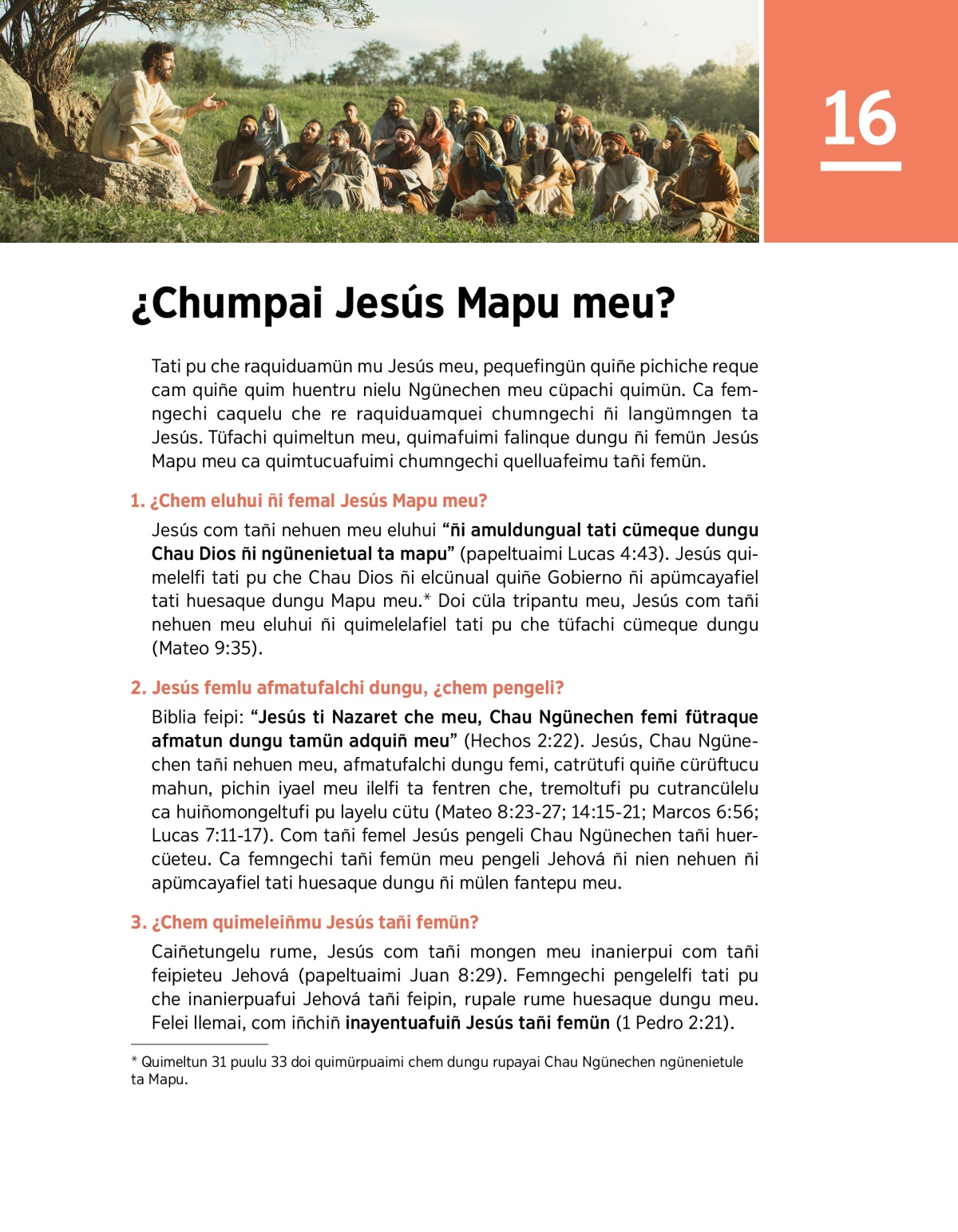 huirintucui tati hunen lifru ñi nütramcael Jesús meu. Tüfachi lifru meu feipingei chem ñi quimeltuel Jesús, doyelchi mai tañi feipin Chau Dios tañi Gobierno meu.