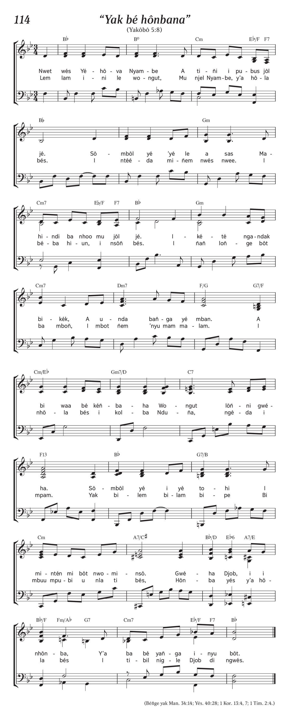 Mu njel Nyambe, y’a hôla bés.