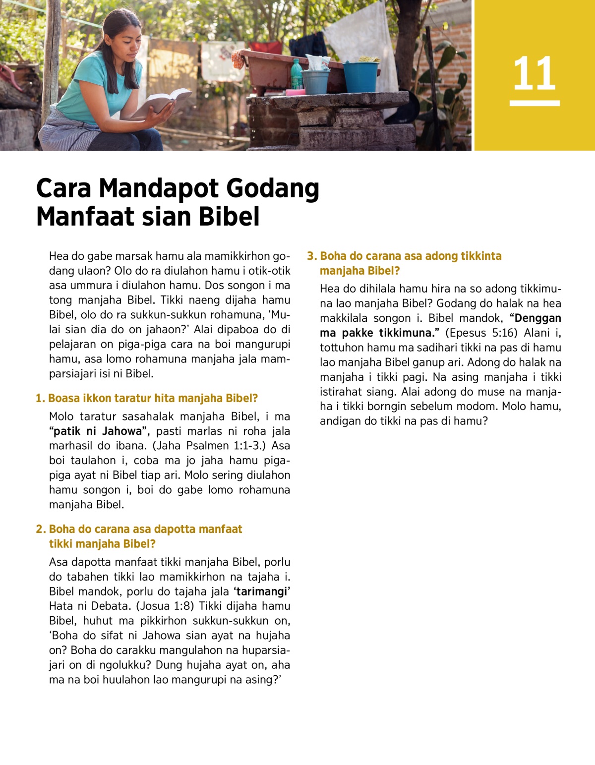 “Aha do Manfaat ni Bibel di Au?—Bagian 2: Manjaha Bibel Boi Mambahen Las Roha” (Artikel web)