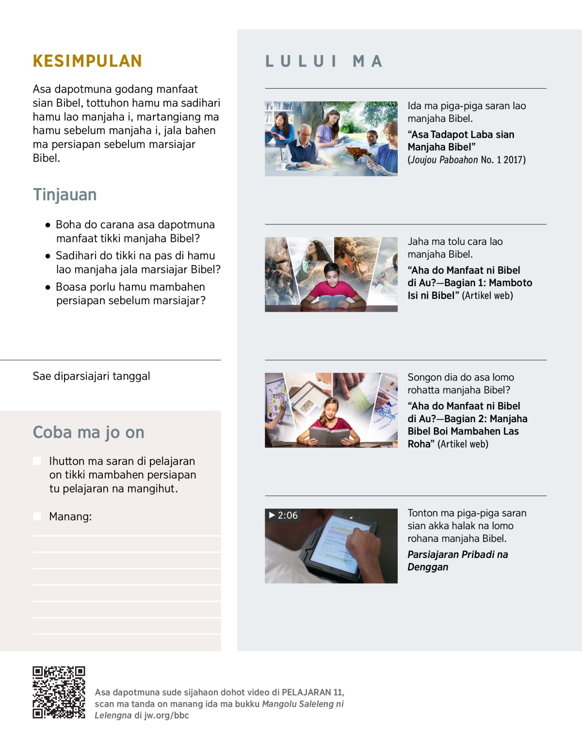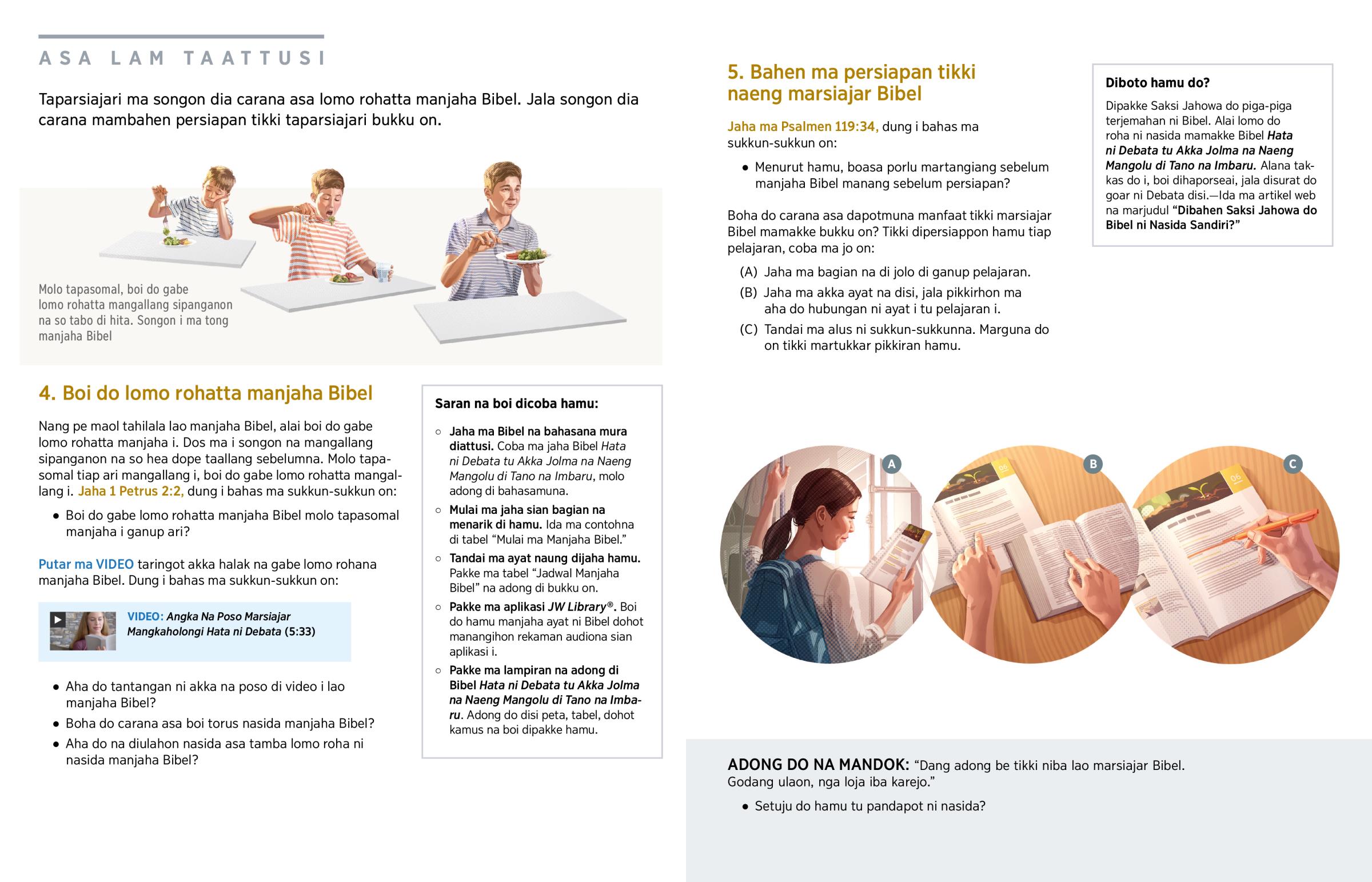 Boha do carana asa dapotmuna manfaat tikki marsiajar Bibel mamakke bukku on? Tikki dipersiappon hamu tiap pelajaran, coba ma jo on: