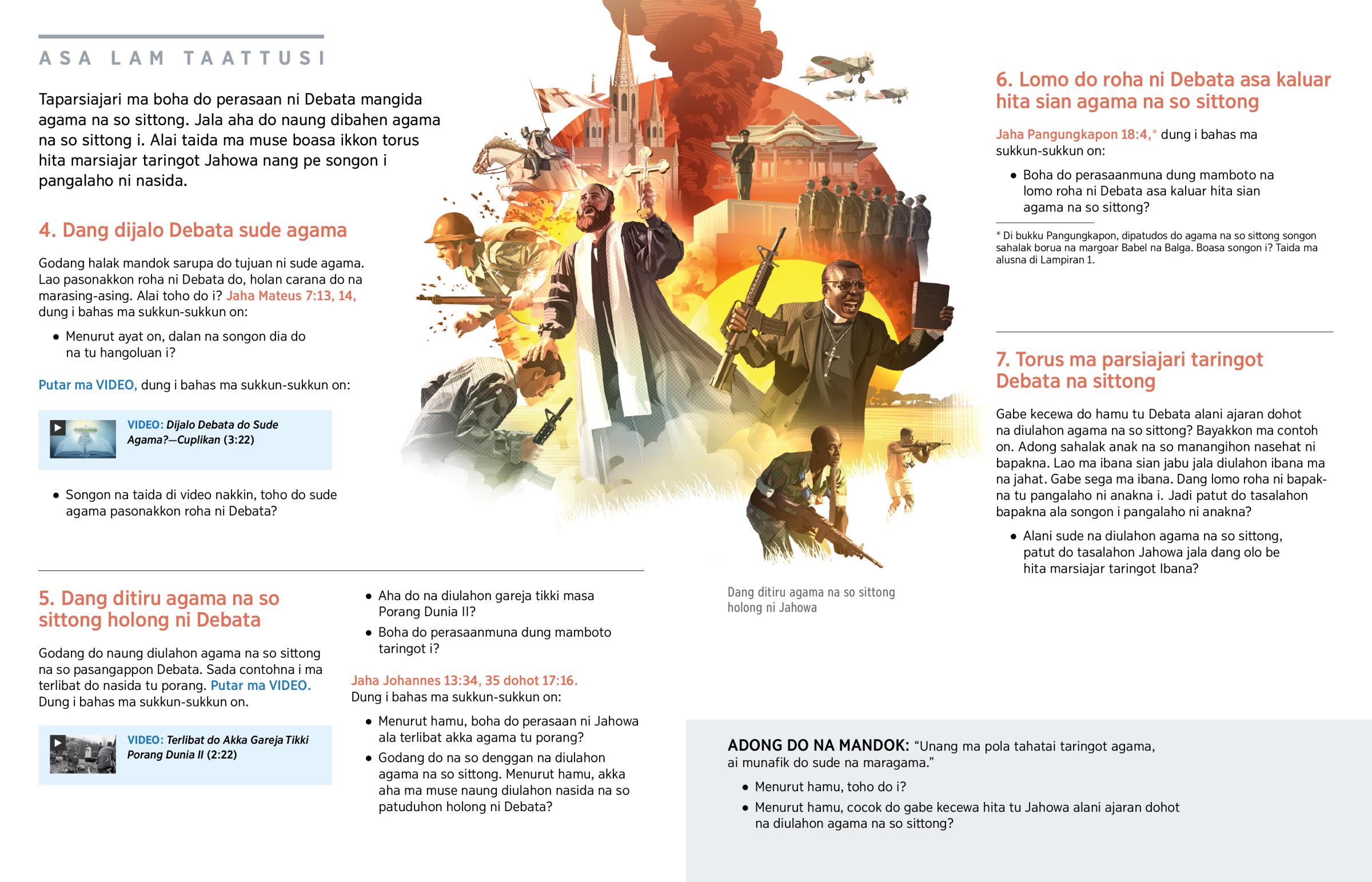 Taparsiajari ma boha do perasaan ni Debata mangida agama na so sittong. Jala aha do naung dibahen agama na so sittong i. Alai taida ma muse boasa ikkon torus hita marsiajar taringot Jahowa nang pe songon i pangalaho ni nasida.