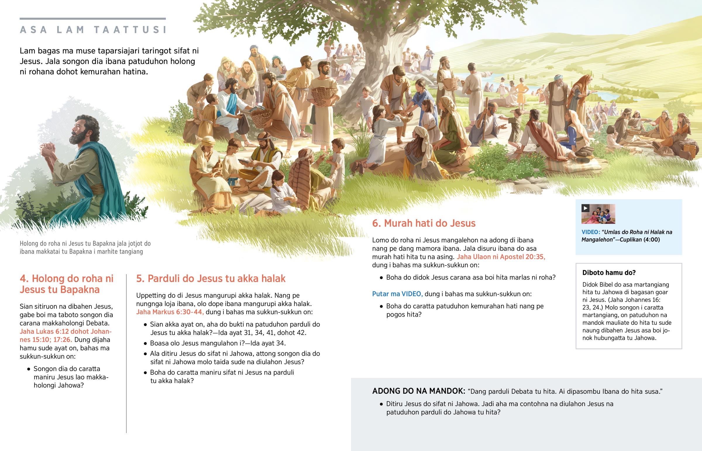 Lam bagas ma muse taparsiajari taringot sifat ni Jesus. Jala songon dia ibana patuduhon holong ni rohana dohot kemurahan hatina.