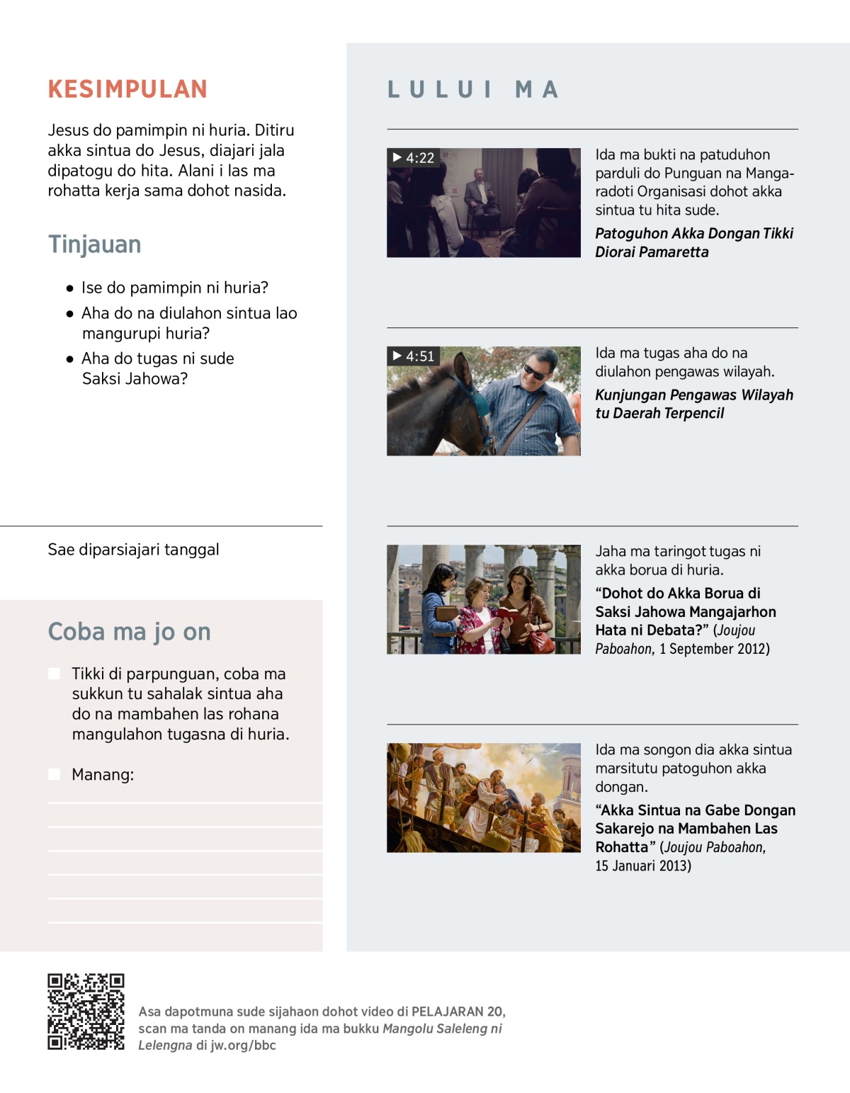 Dipaboa do di Bibel boasa ikkon kerja sama hita dohot akka sintua. Jaha Heber 13:17, dung i bahas ma sukkun-sukkun on: