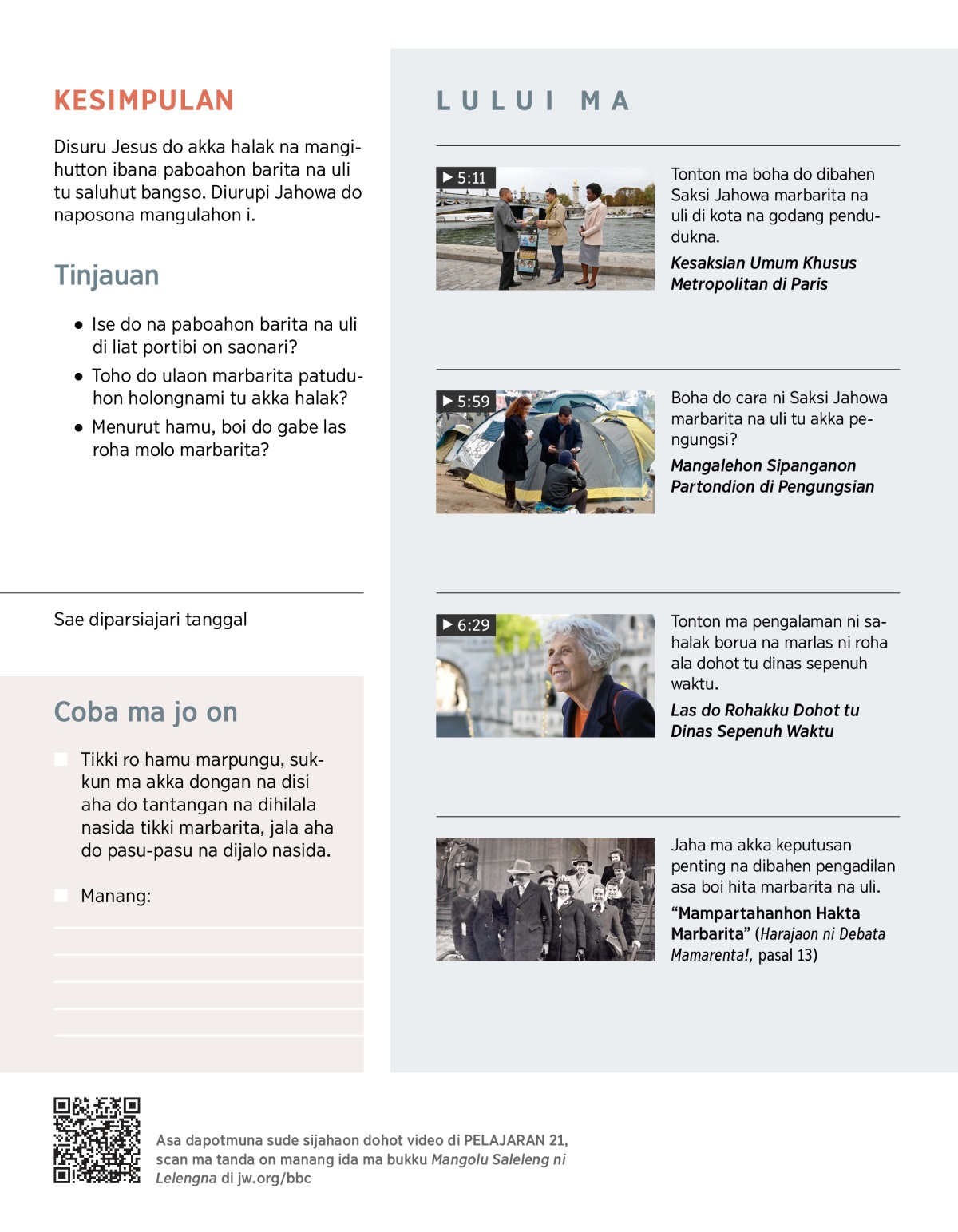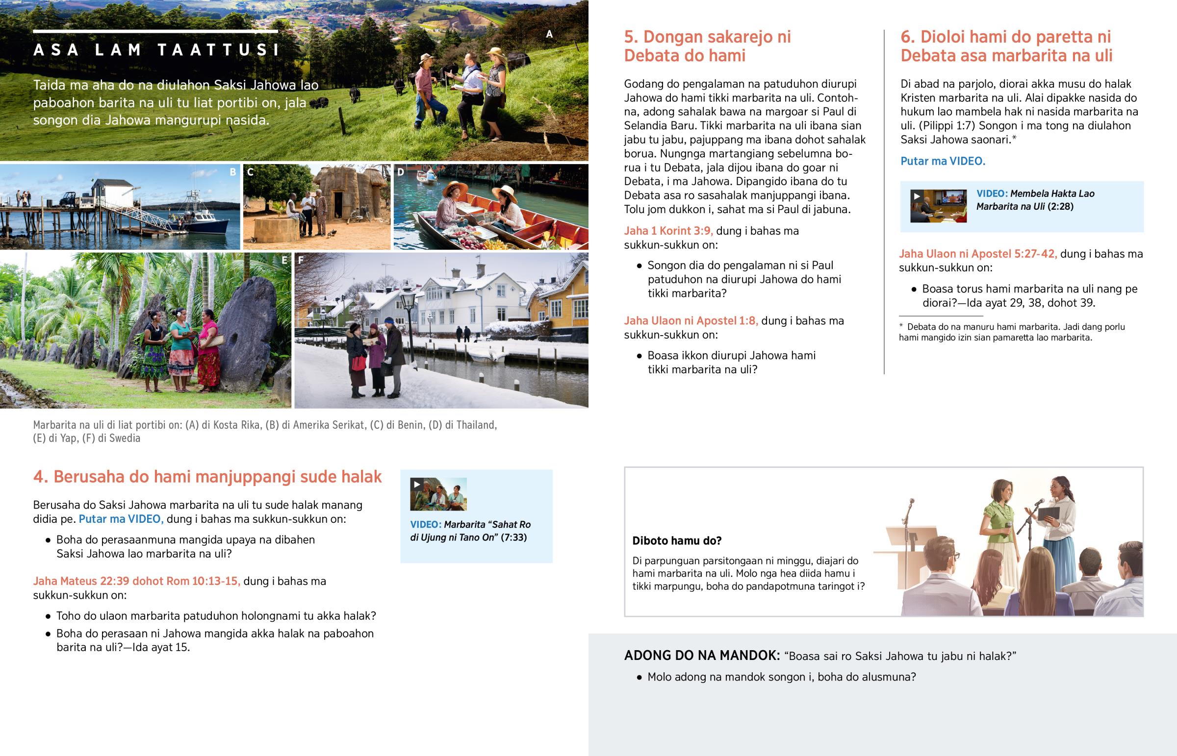 Berusaha do Saksi Jahowa marbarita na uli tu sude halak manang didia pe. Putar ma VIDEO, dung i bahas ma sukkun-sukkun on: