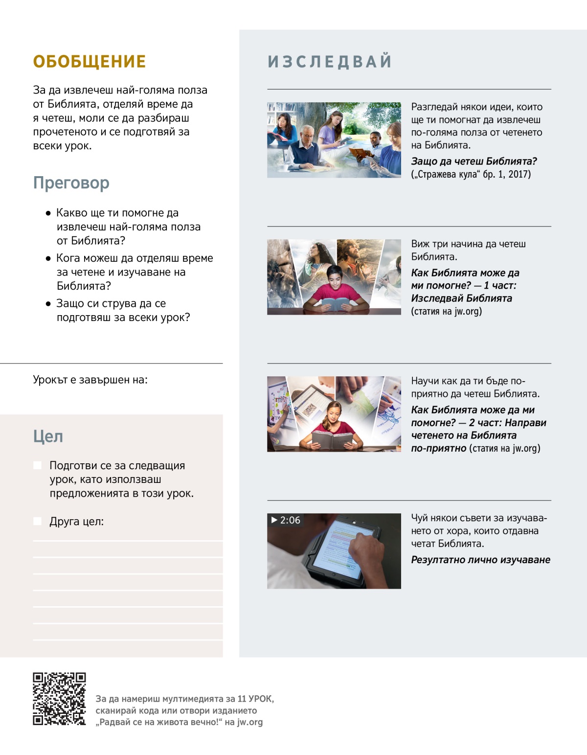 За да извлечеш най-голяма полза от Библията, отделяй време да я четеш, моли се да разбираш прочетеното и се подготвяй за всеки урок.