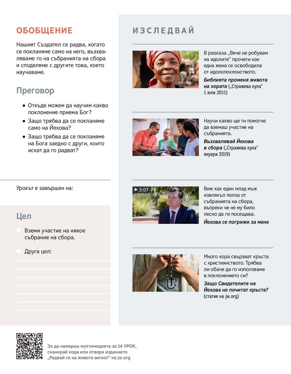 Нашият Създател се радва, когато се покланяме само на него, възхваляваме го на събранията на сбора и споделяме с другите това, което научаваме.