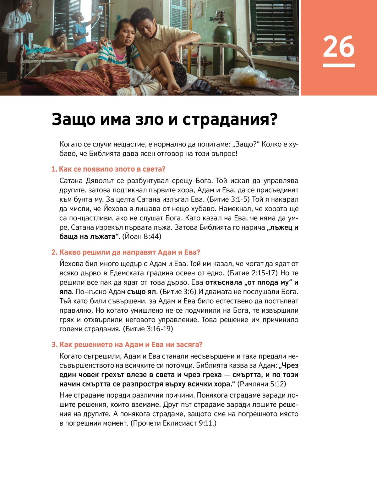 Сатана Дяволът и първата човешка двойка са главните виновници за злото в света. На Йехова му е мъчно, че страдаме, и скоро ще прекрати всички страдания.