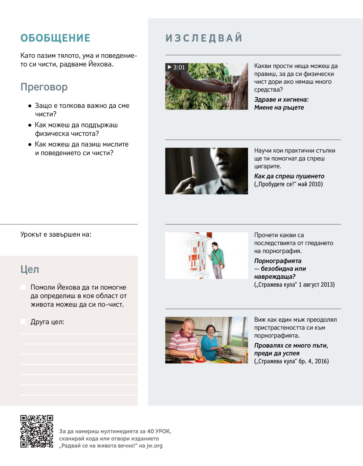 Научи как с физическата си чистота прославяме Йехова и как можем да преодолеем нечистите навици.
