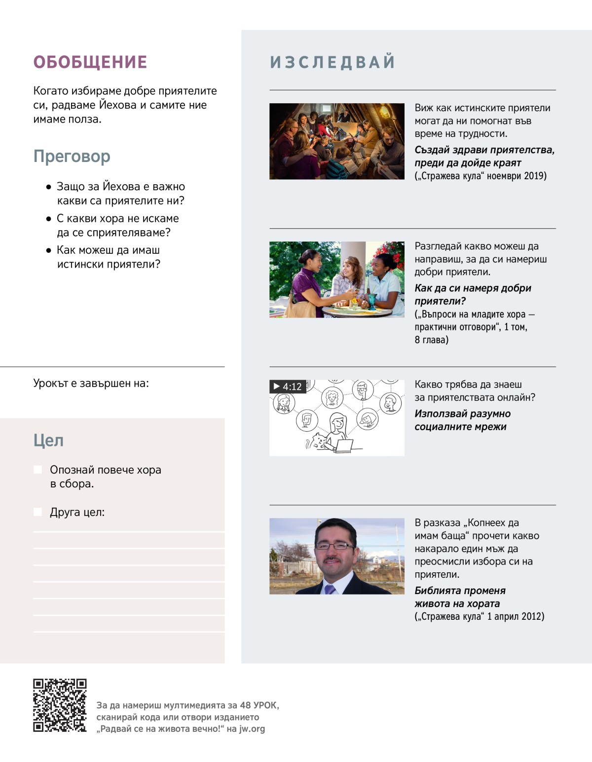 Хората, които не обичат Йехова и стандартите му, са лоши приятели. Гледайте КЛИПА и обсъдете въпроса: