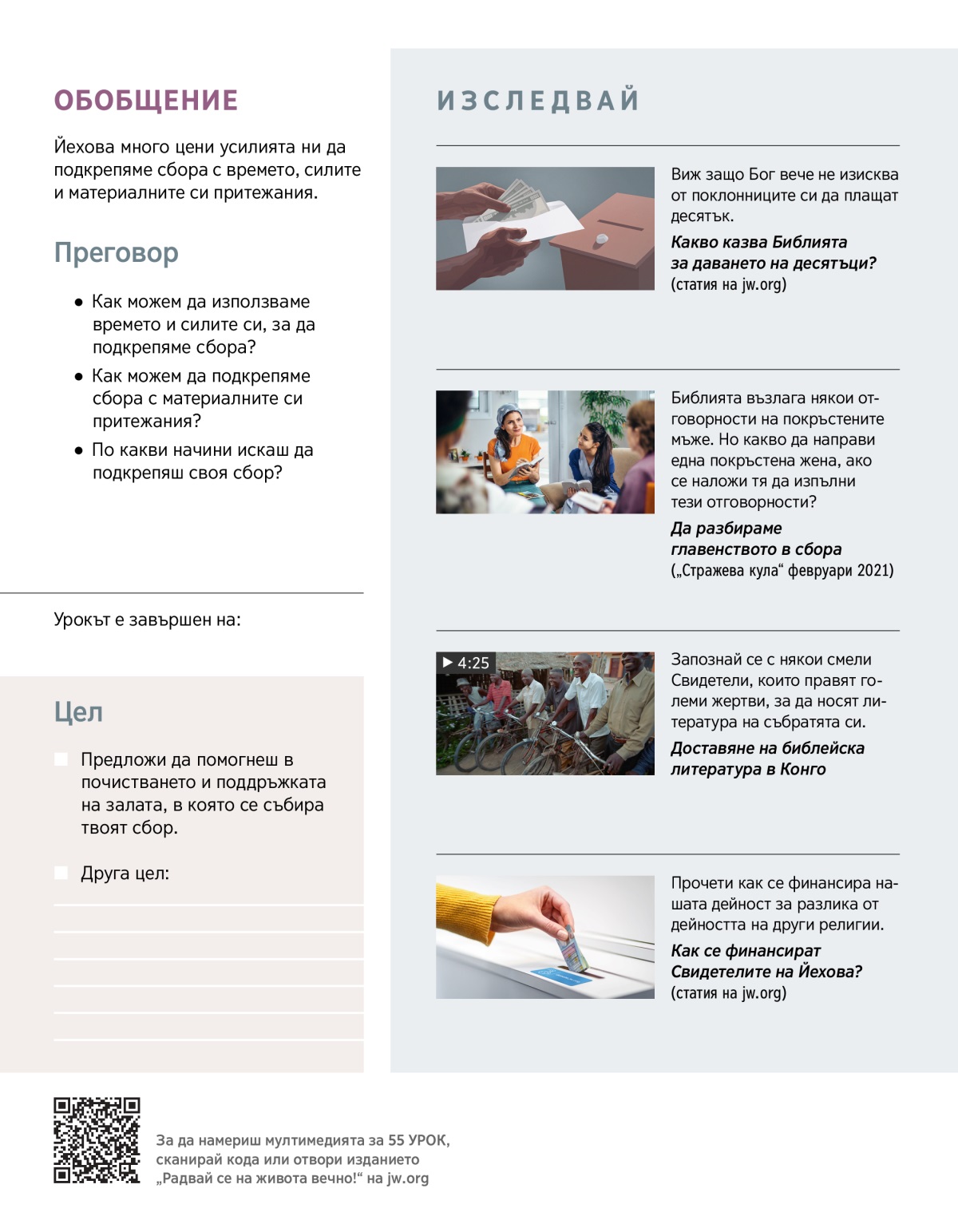 Разгледай някои начини, по които можем да подкрепяме сбора.