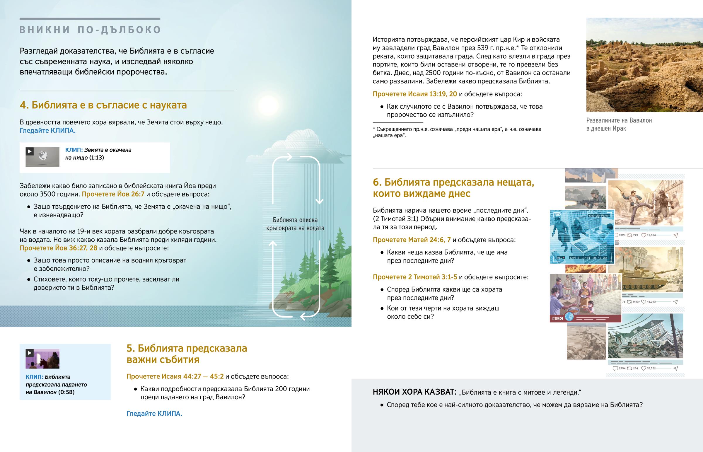 Библията дава много обещания и съвети. Сигурно си любопитен какво учи тя, но може би си и предпазлив. Трябва ли да вярваш на обещания и съвети от такава стара книга? Можеш ли наистина да имаш доверие в това, което казва Библията за живота днес и в бъдеще? Милиони хора вярват на Библията. Виж дали и ти можеш да си сред тях.