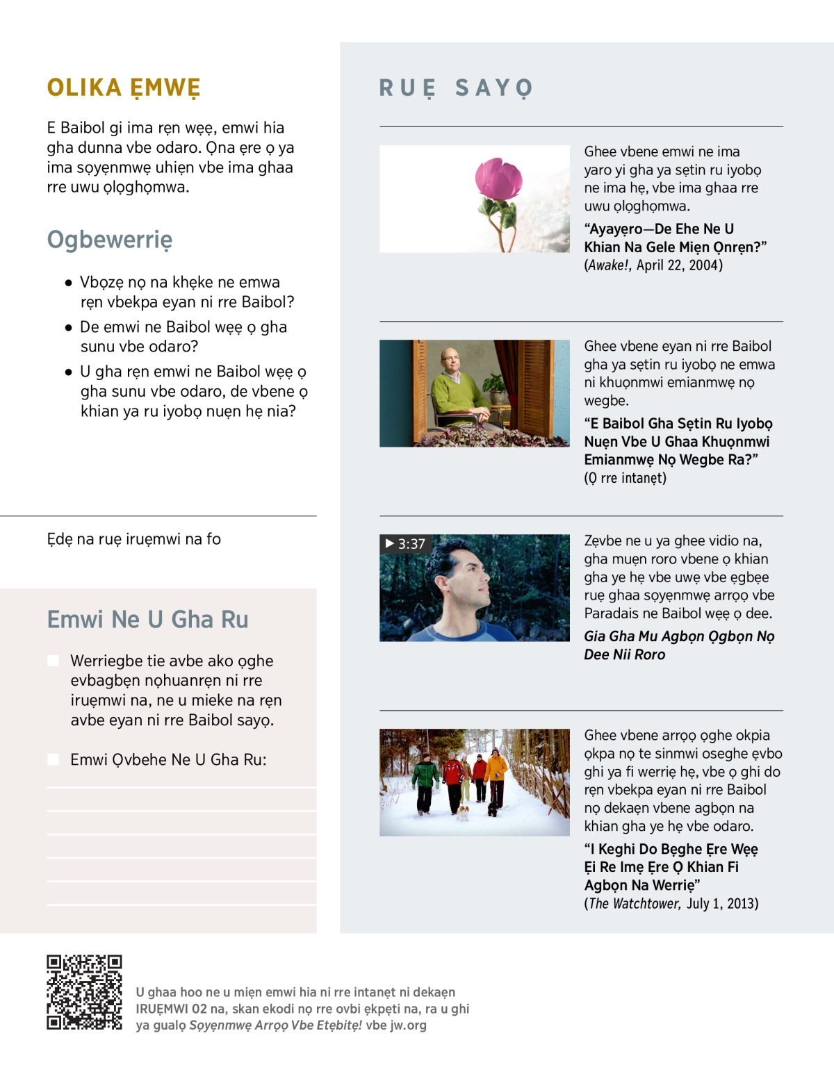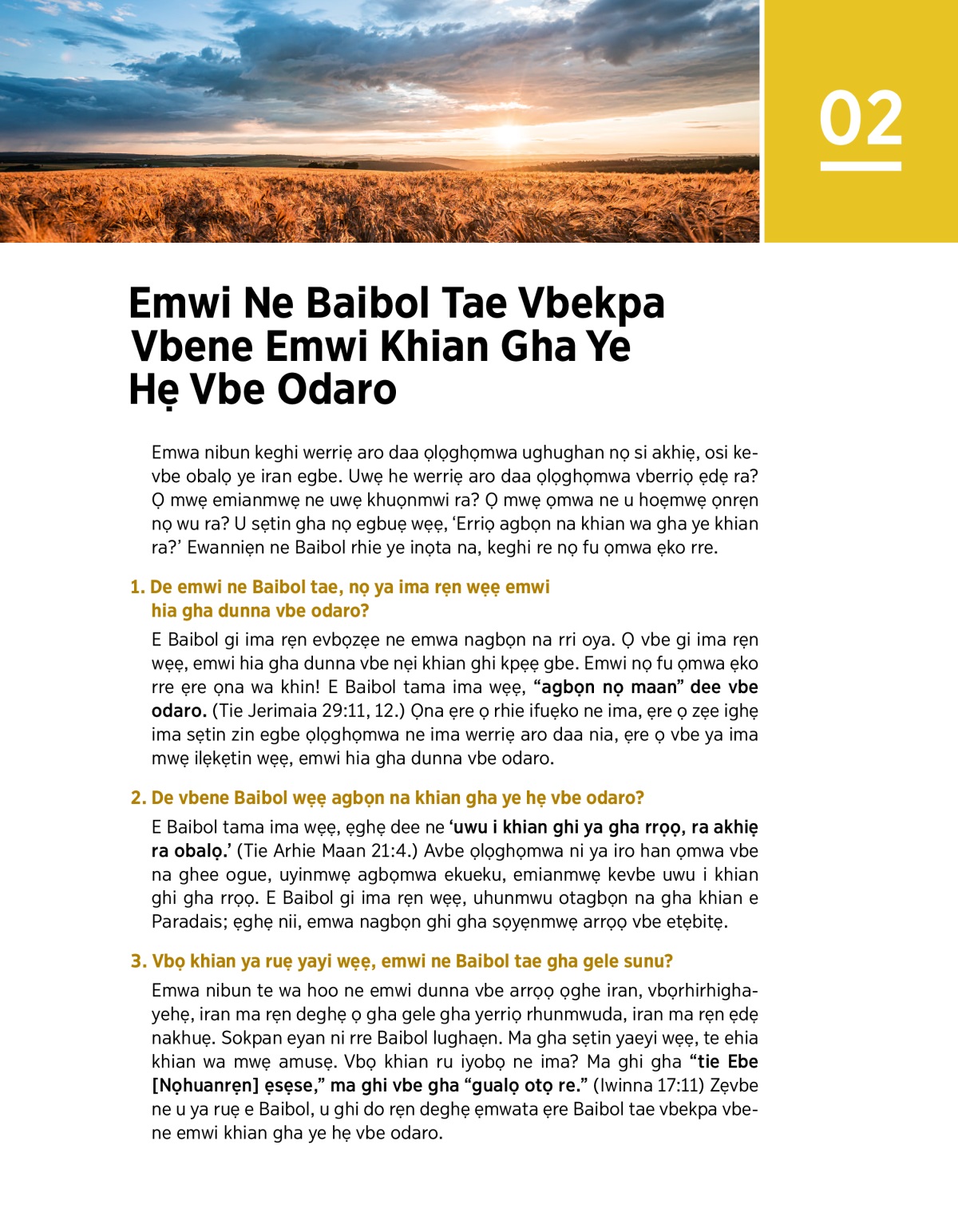 • Emwi Ne Baibol Tae Vbekpa Vbene Emwi Khian Gha Ye Hẹ Vbe Odaro