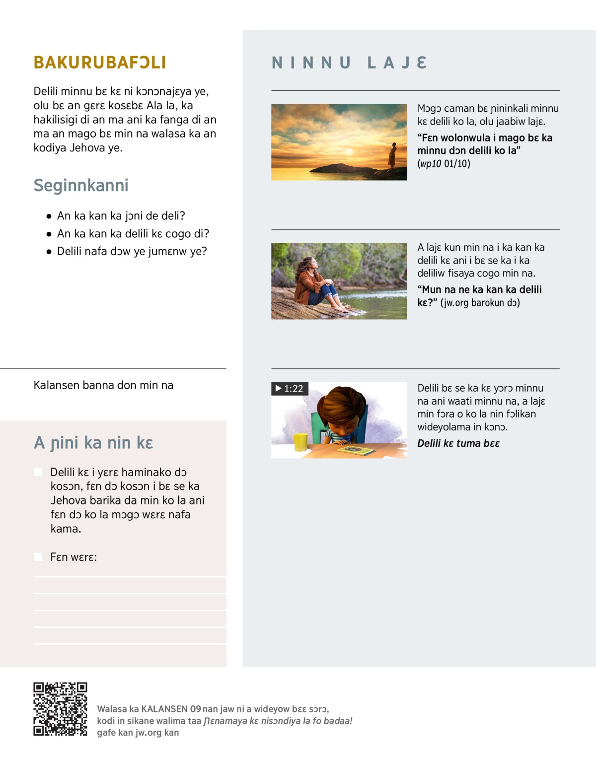1. An ka kan ka jɔni de deli ani an bɛ se ka delili kɛ mun ni mun de ko la?