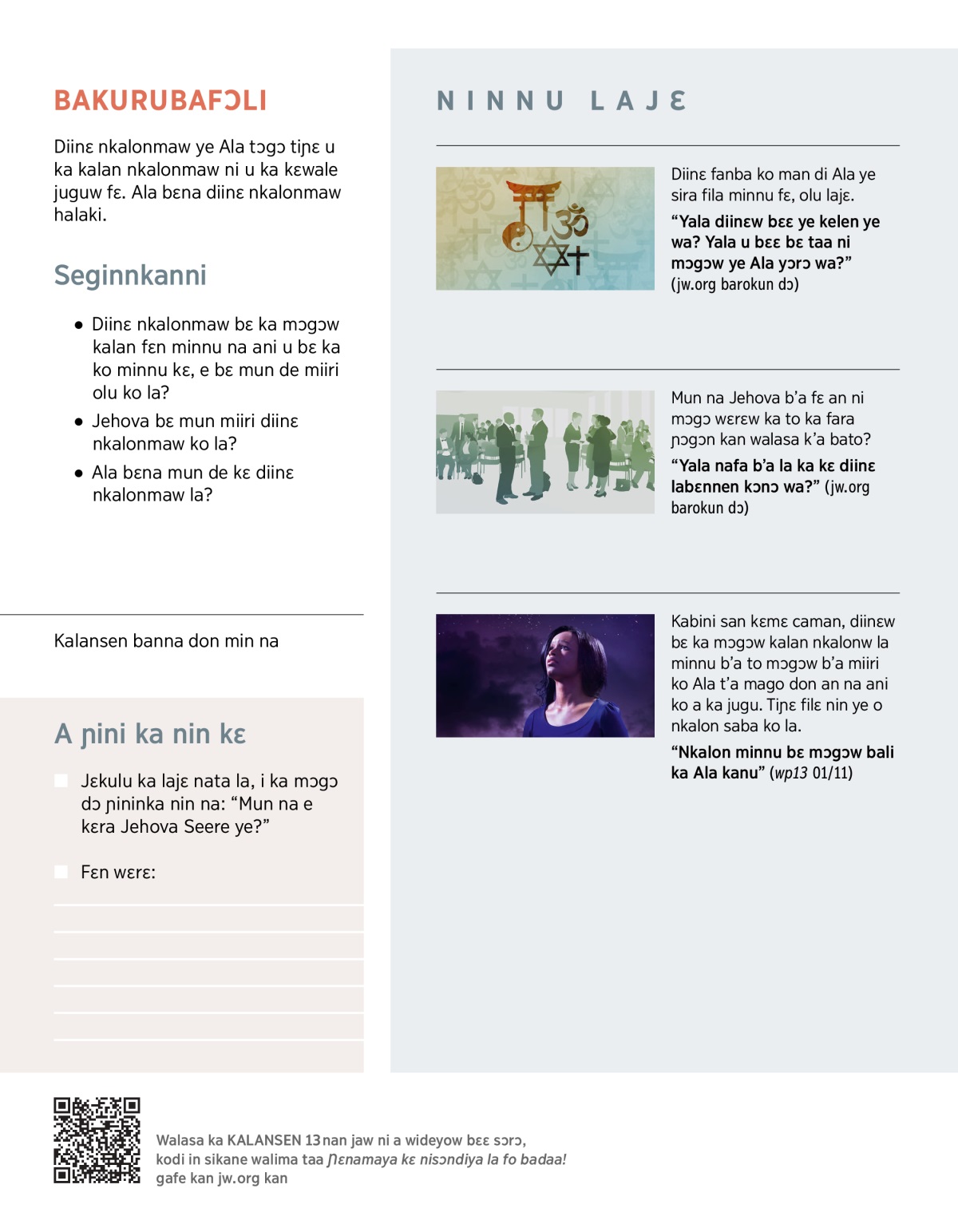 “Yala nafa b’a la ka kɛ diinɛ labɛnnen kɔnɔ wa?” (jw.org barokun dɔ)