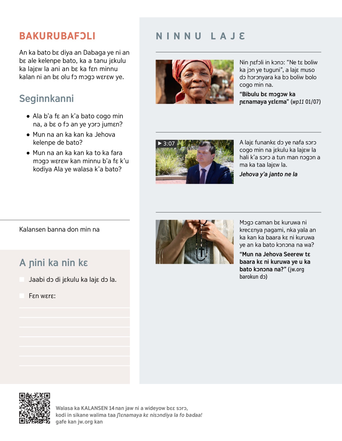 “Mun na Jehova Seerew tɛ baara kɛ ni kuruwa ye u ka bato kɔnɔna na?” (jw.org barokun dɔ)