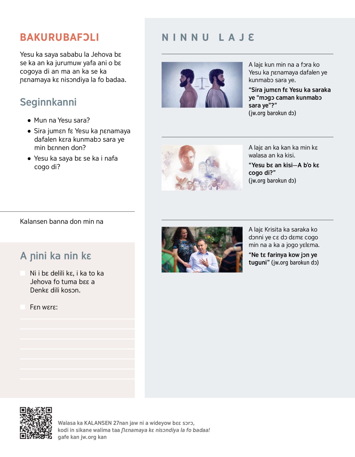 1. An bɛ se ka nafa sɔrɔ Yesu ka saya la cogo di kabini sisan?