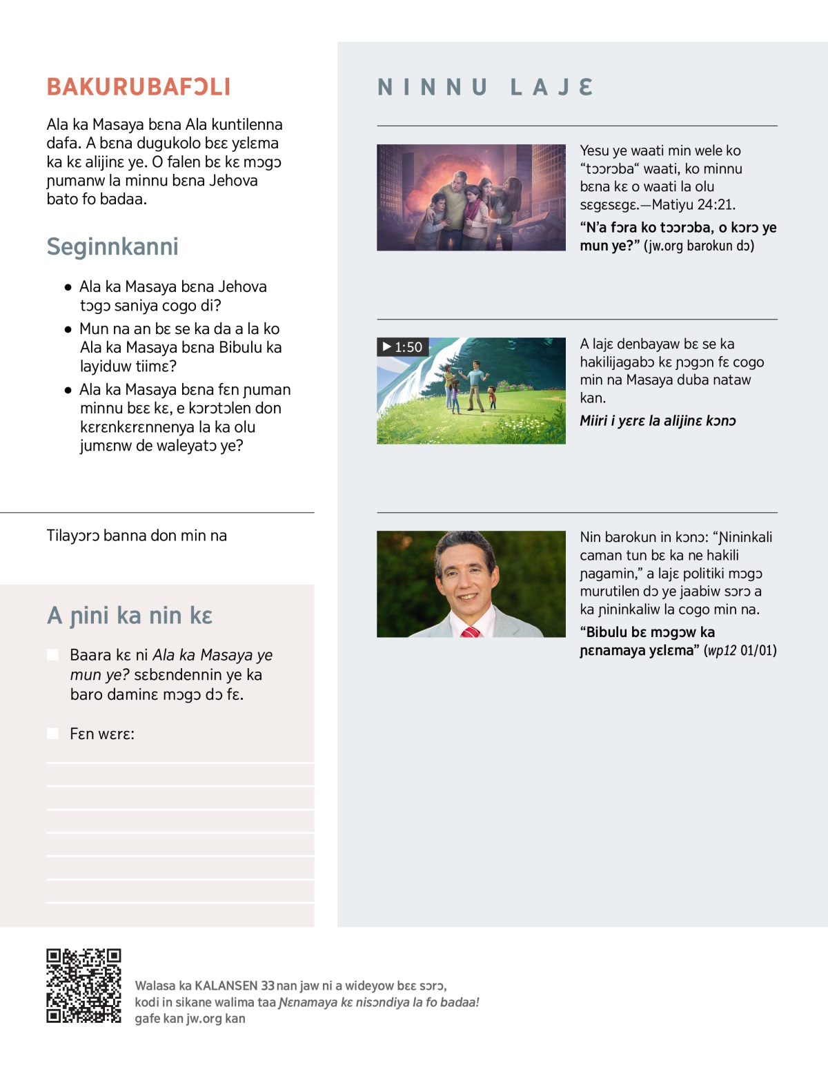 “N’a fɔra ko tɔɔrɔba, o kɔrɔ ye mun ye?” (jw.org barokun dɔ)