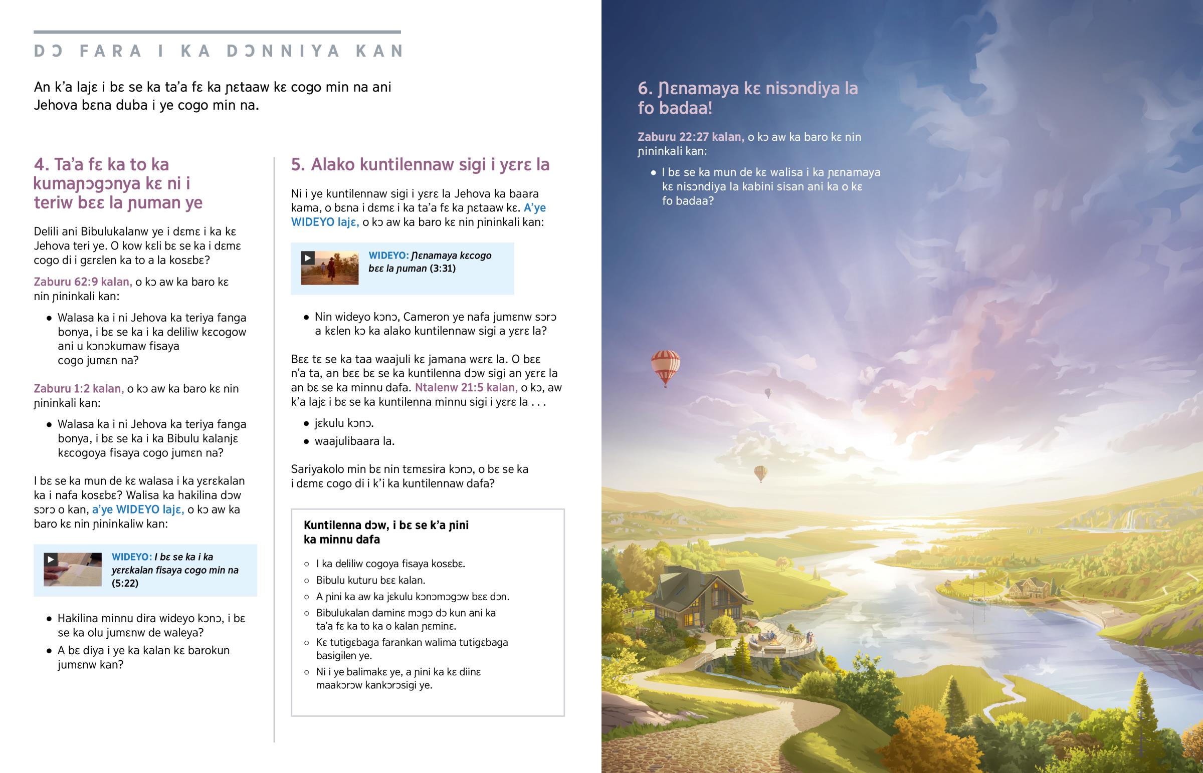 Ta’a fɛ ka i ni Jehova ka teriya fanga bonya ani ka alako kuntilennaw sigi i yɛrɛ la. O la, i bɛ se ka ɲɛnamaya kɛ nisɔndiya la kabini sisan ani ka o kɛ fo badaa!