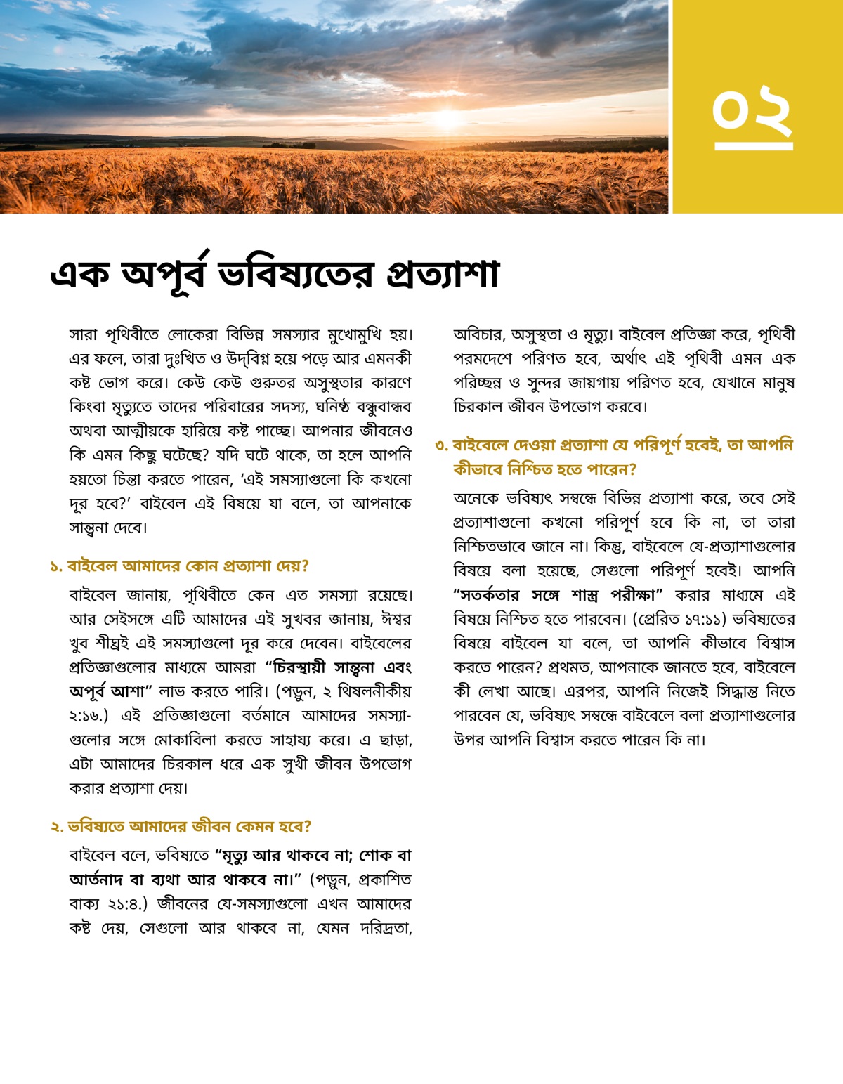 বাইবেল এক অপূর্ব ভবিষ্যতের প্রত্যাশা দেয়। আর এটা বর্তমানে আমাদের বিভিন্ন সমস্যার সঙ্গে মোকাবিলা করতে সাহায্য করে।